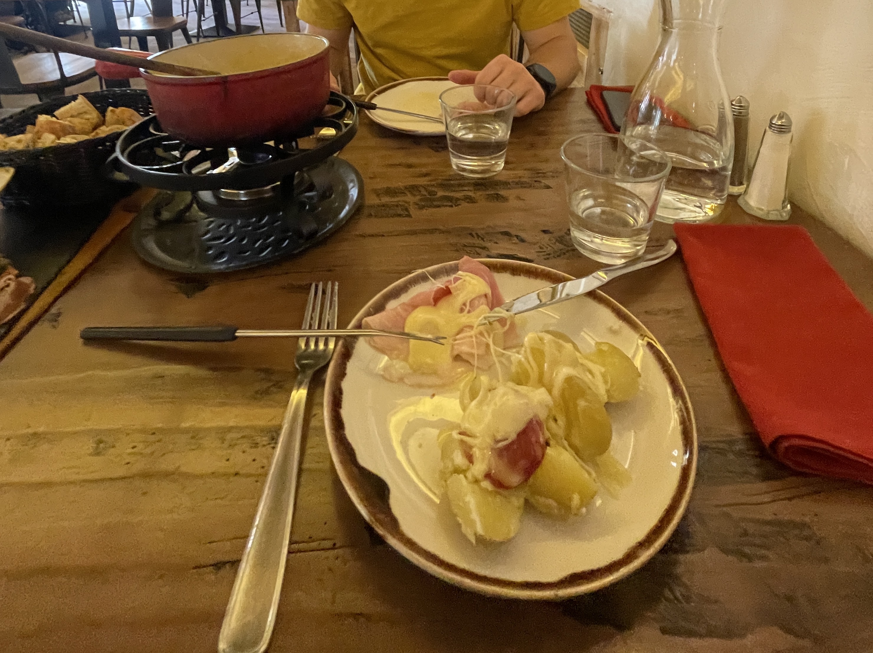 Fondue fade, plateau de charcuterie plus que léger en quantité, tartare de bœuf fade, service sympa