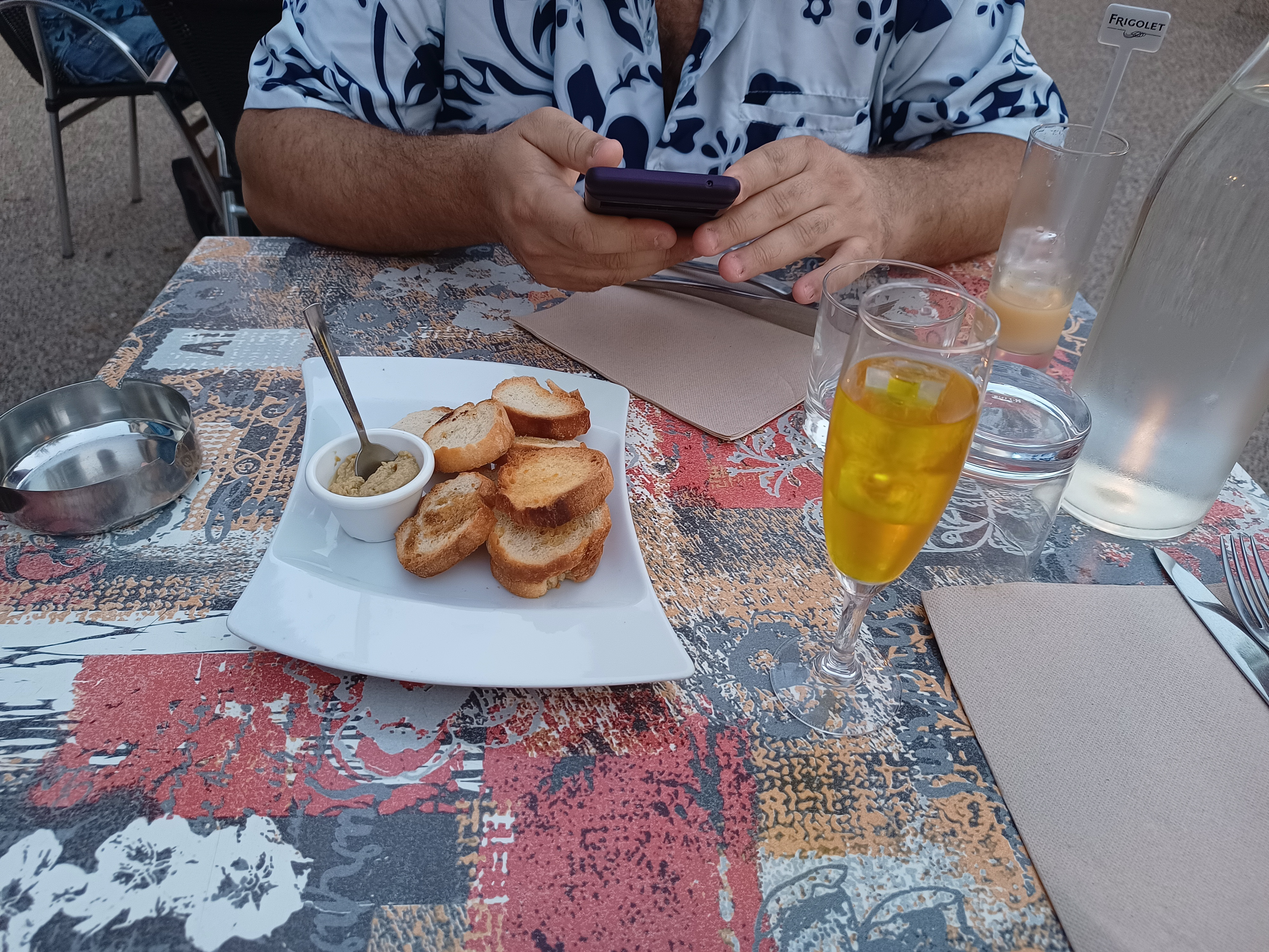 Personnellement la devanture ne m a jamais donné envie d y rentrer mais ce fut une belle surprise ! Une belle carte qui met en avant les produits frais de la region. On a fait simple, une assiette de poutargue à partager en entrée et des moules accompagnées d un vin blanc bio. Un délice ! Nous reviendrons pour les fruits de mer !