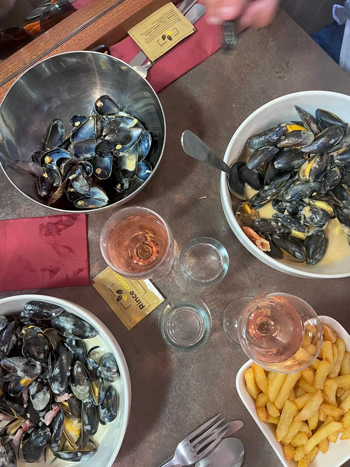 Superbe découverte : 5 nuances de moules goûtées et validées. Jusqu'aux desserts généreux, preuve à l'appui