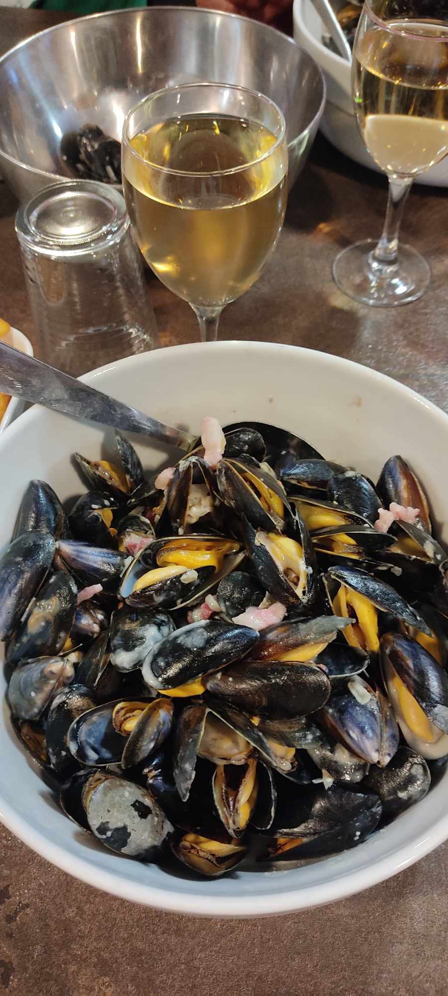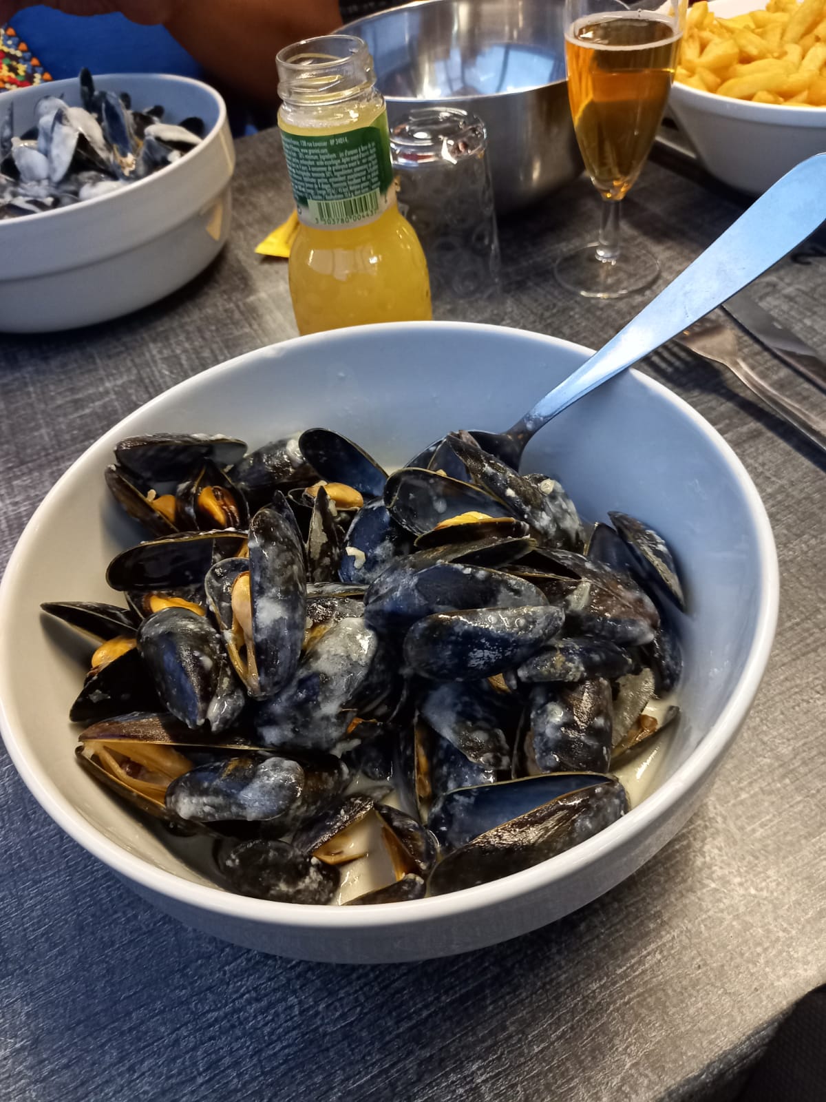 Arrivés à 19h30, nous nous sommes régalés avec de bonnes moules, il y a toujours de nombreuses recettes, il y en a vraiment pour tous les goûts !