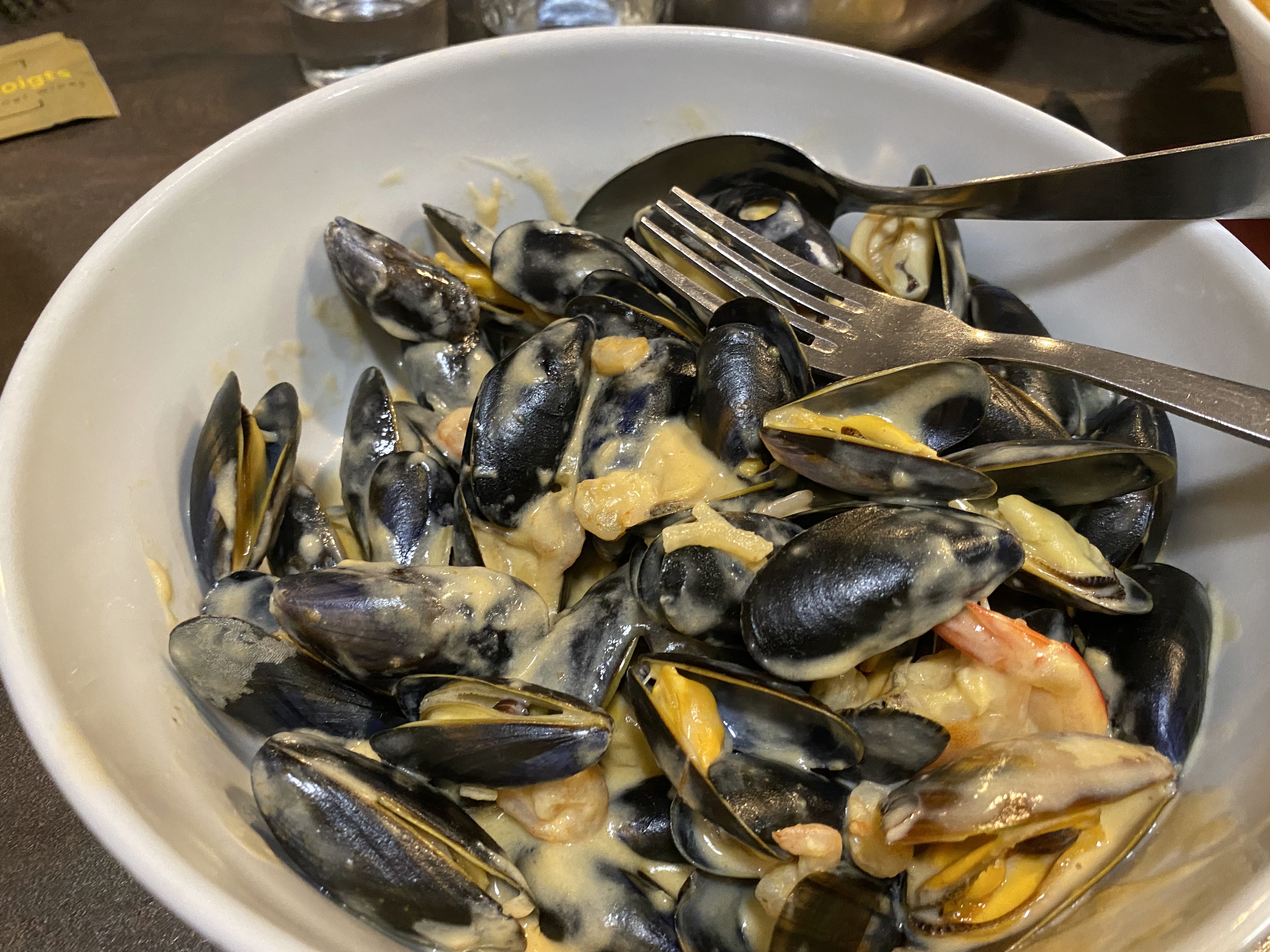 Attirés par la carte 50 variétés de moules. Léger à priori vu la proximité de la rue, finalement tout s'est bien passé. Patron et service sympas 💯 On y serait retourné le lendemain mais c'était le jour de fermeture hebdomadaire.
