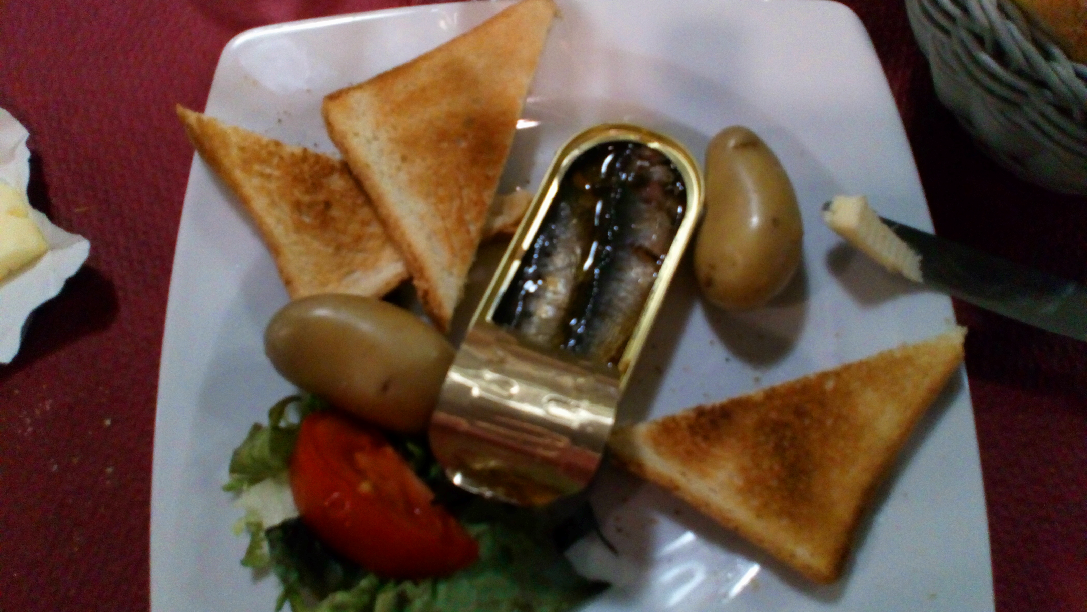 Moules excellentes servies avec une portion de frites, sardines succulentes ! Et le dessert royal servi avec deux parts de tartes, le tout sous l'œil bienveillant du propriétaire. En deux mots : délicieux repas ! Je recommande fortement.