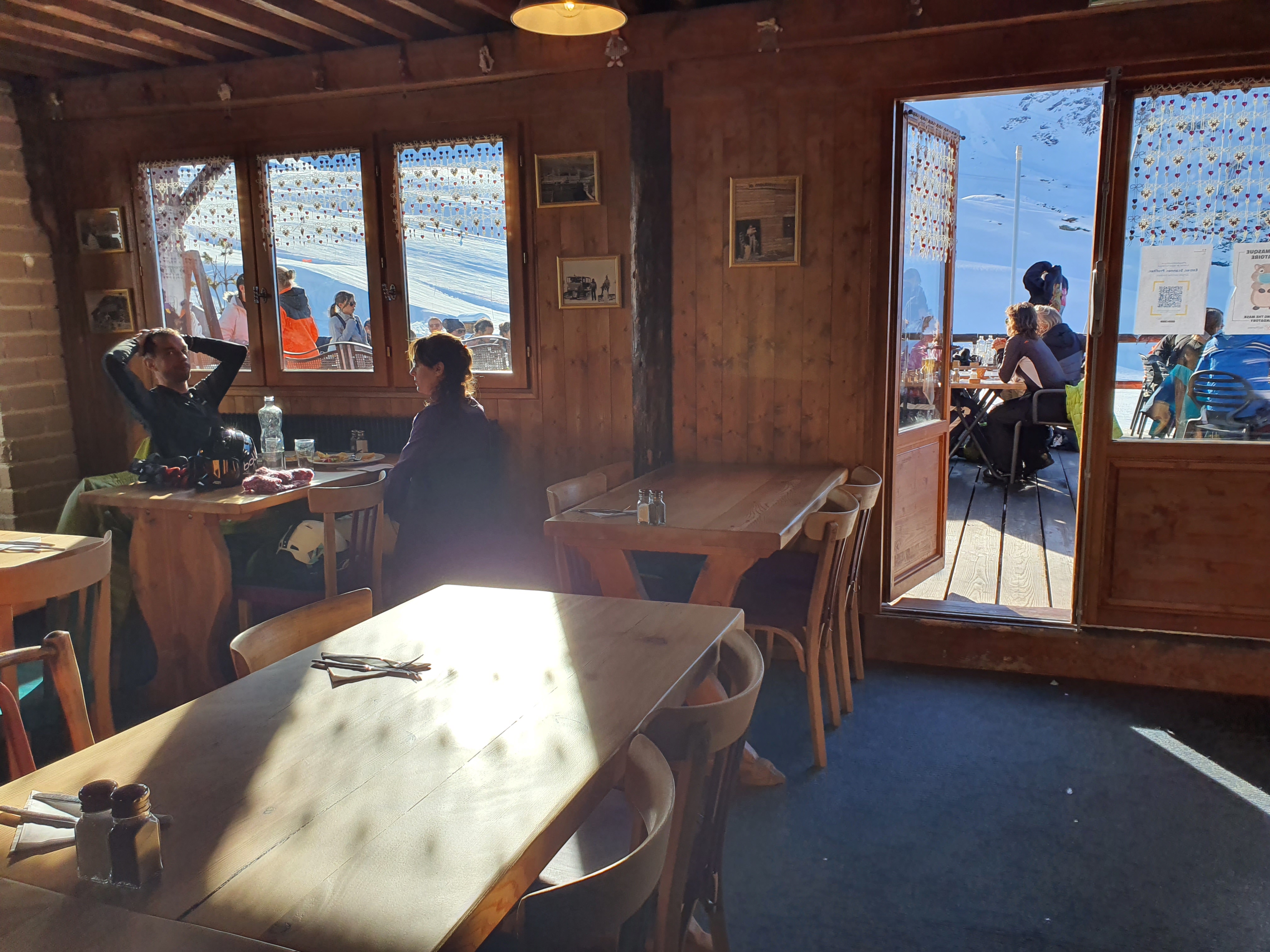 Terrasse très agréable. Très bien pour un dej au milieu des pistes. Service efficace.