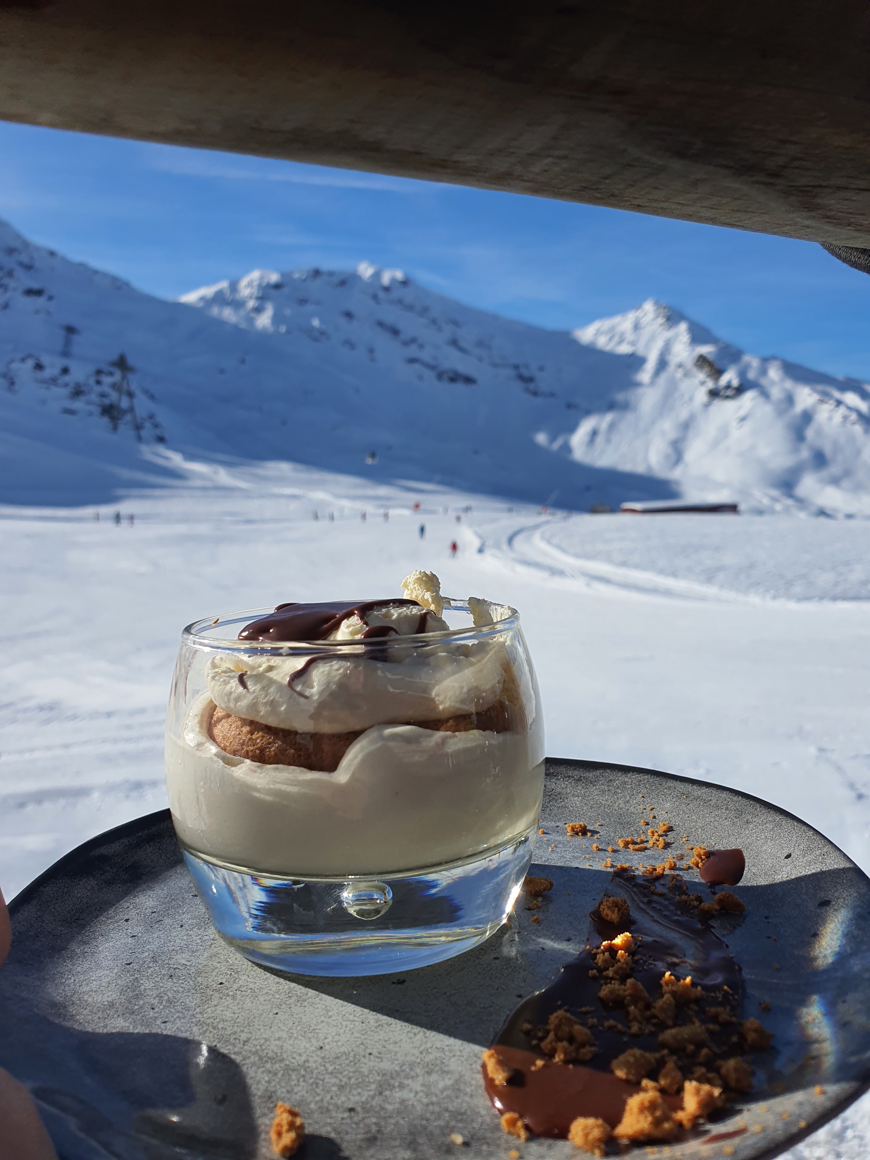 Une petite pause choco-rhum dans ce restaurant au bord des pistes. Magnifique.