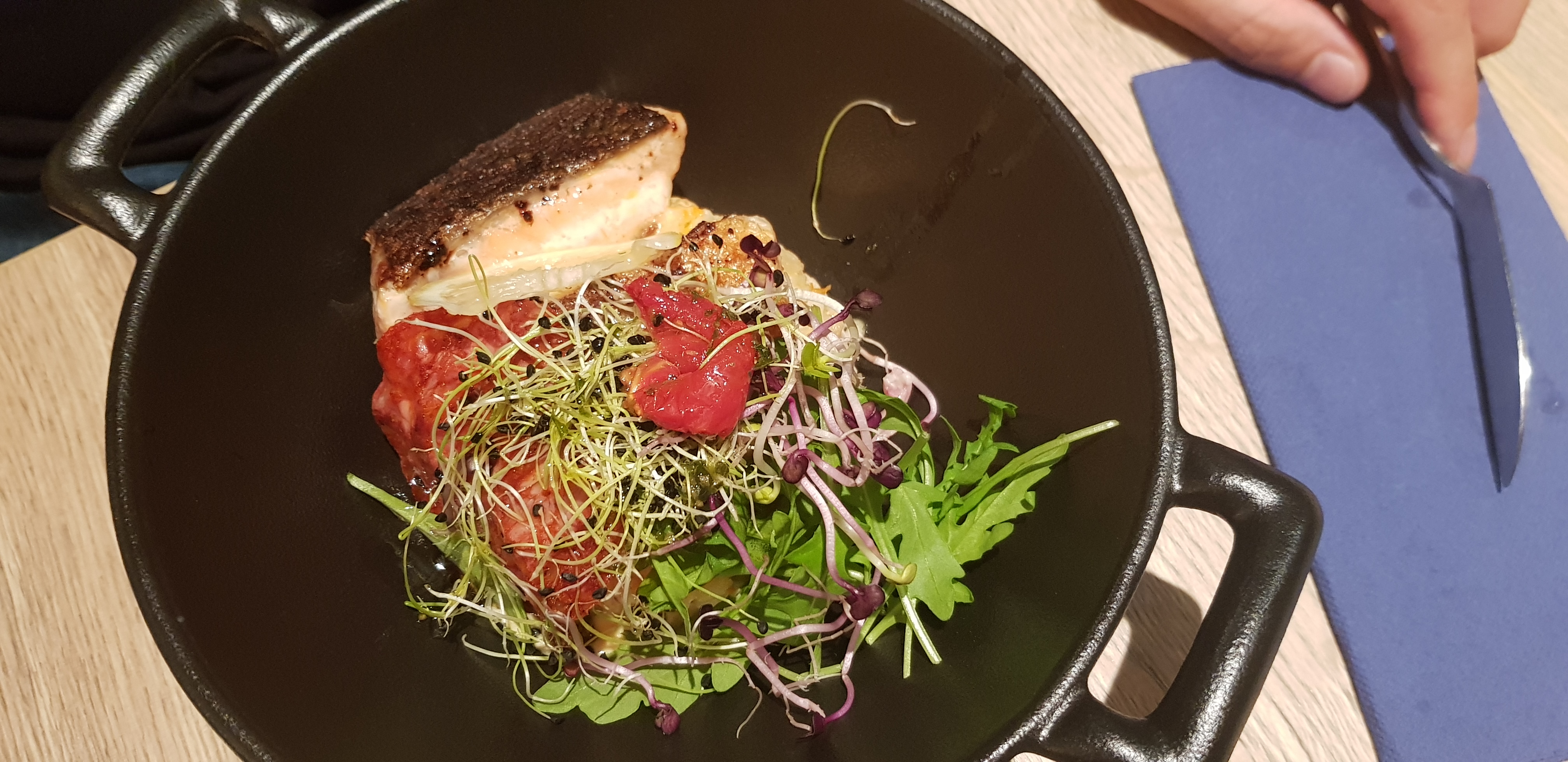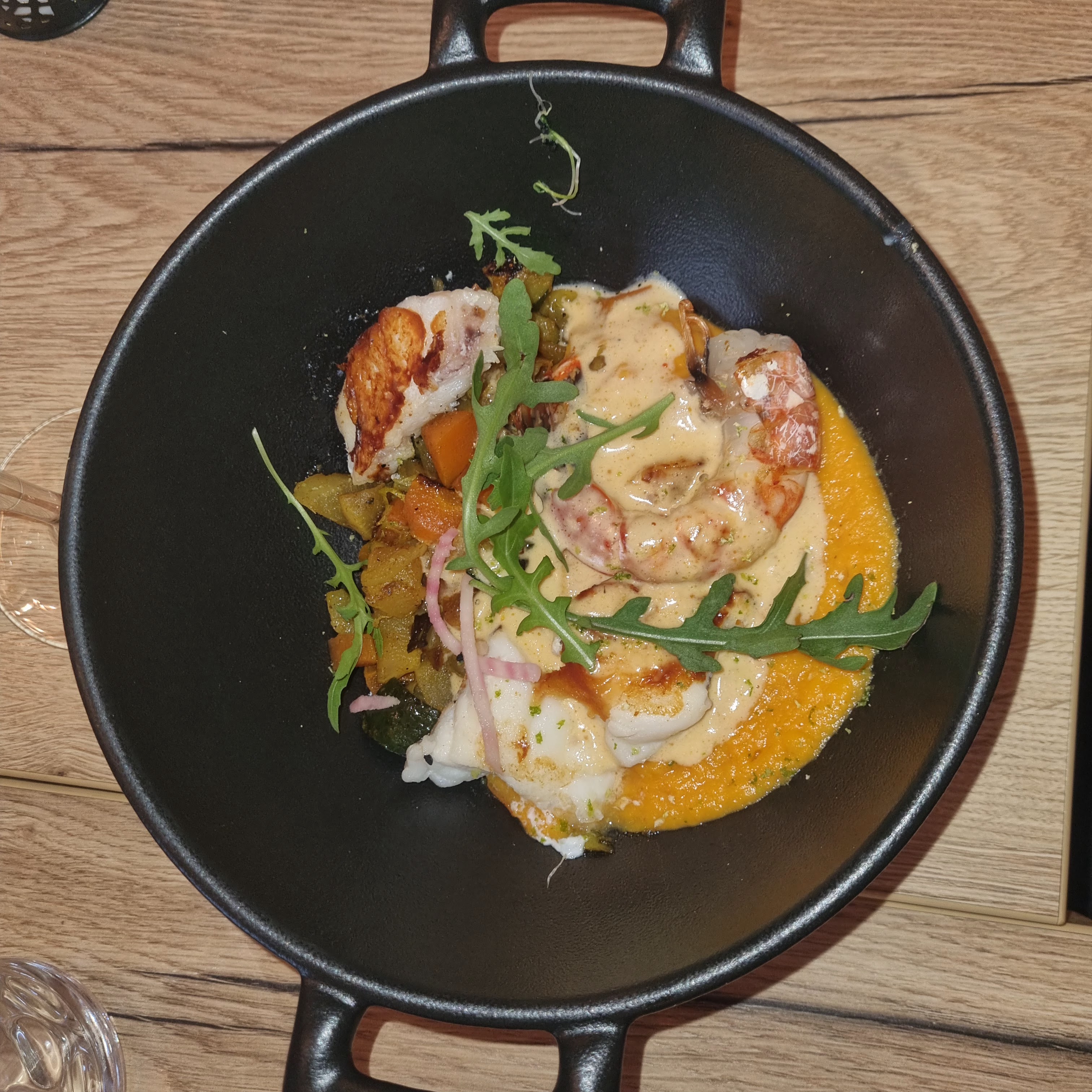Réservation d'une table entres amis. Un plat à 22€ : médaillon de lotte au chorizo purée de patates douce et accompagnement. 4 petits morceaux de lottes qui se battent en duel noyé dans la purée de patates douces, une rondelle de chorizo hyper fine, un gros morceau de fenouille (ca comble dans l'assiette) et le tout servis TIEDE !! Plusieurs déçu sur notre table. Ex : noix de st jacques à la vanille : la gousse à du tomber dans les noix Je déconseille fortement