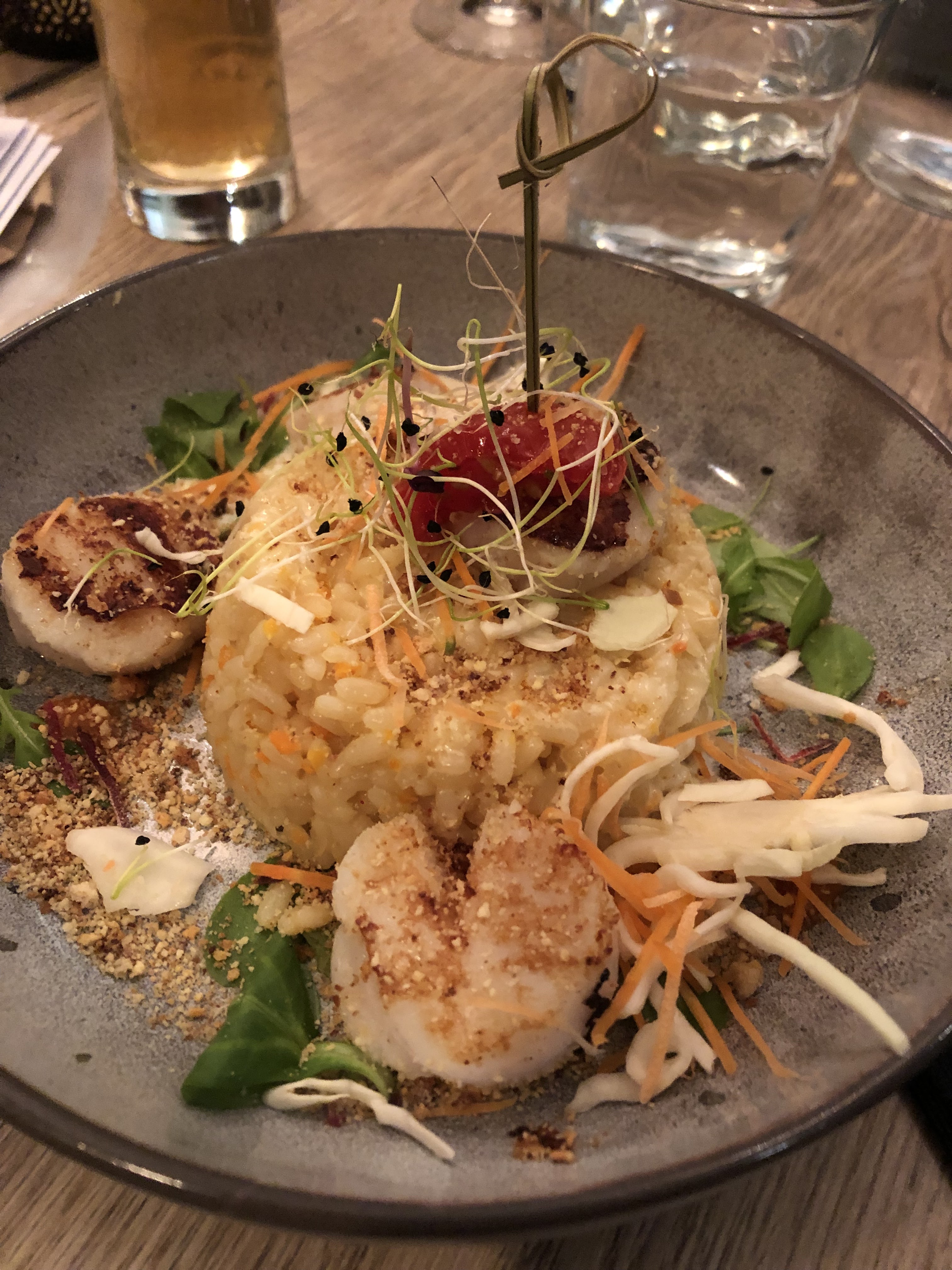 Bonne découverte. La qualité, les saveurs sont presque toutes la. J'ai fais part de ma déception concernant le risotto qui accompagnait les noix de St Jacques: trop sec, pas assez assaisonné selon moi. Le chorizo n'apportait pas assez de caractère au plat, je ne l'ai pas beaucoup senti. Cependant, le reste était top, frais; de belles découvertes gustatives. Décoration très sympa. Les tables sont à mon goût un peu trop proche. Service aimable et réactif mais parfois le sentiment que cela doit s'enchaîner rapidement. 4 étoiles cependant bien méritées.
