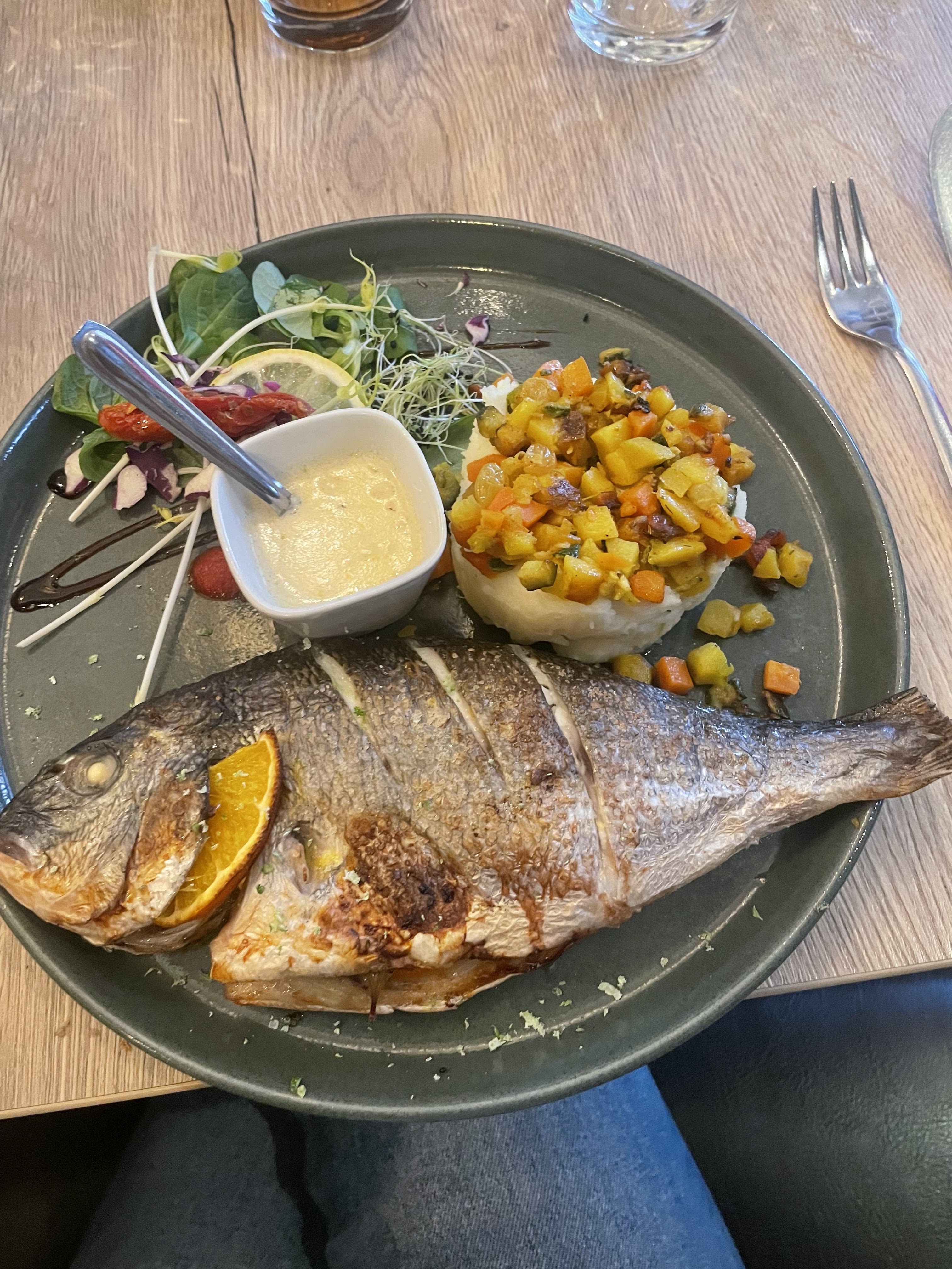 Ambiance très agréable et le personnel était adorable. Le poisson était frais et les portions étaient correctes. Nous avons eu une bonne table, près de la fenêtre, et avons pu voir le port, qui a l'air très joli le soir.