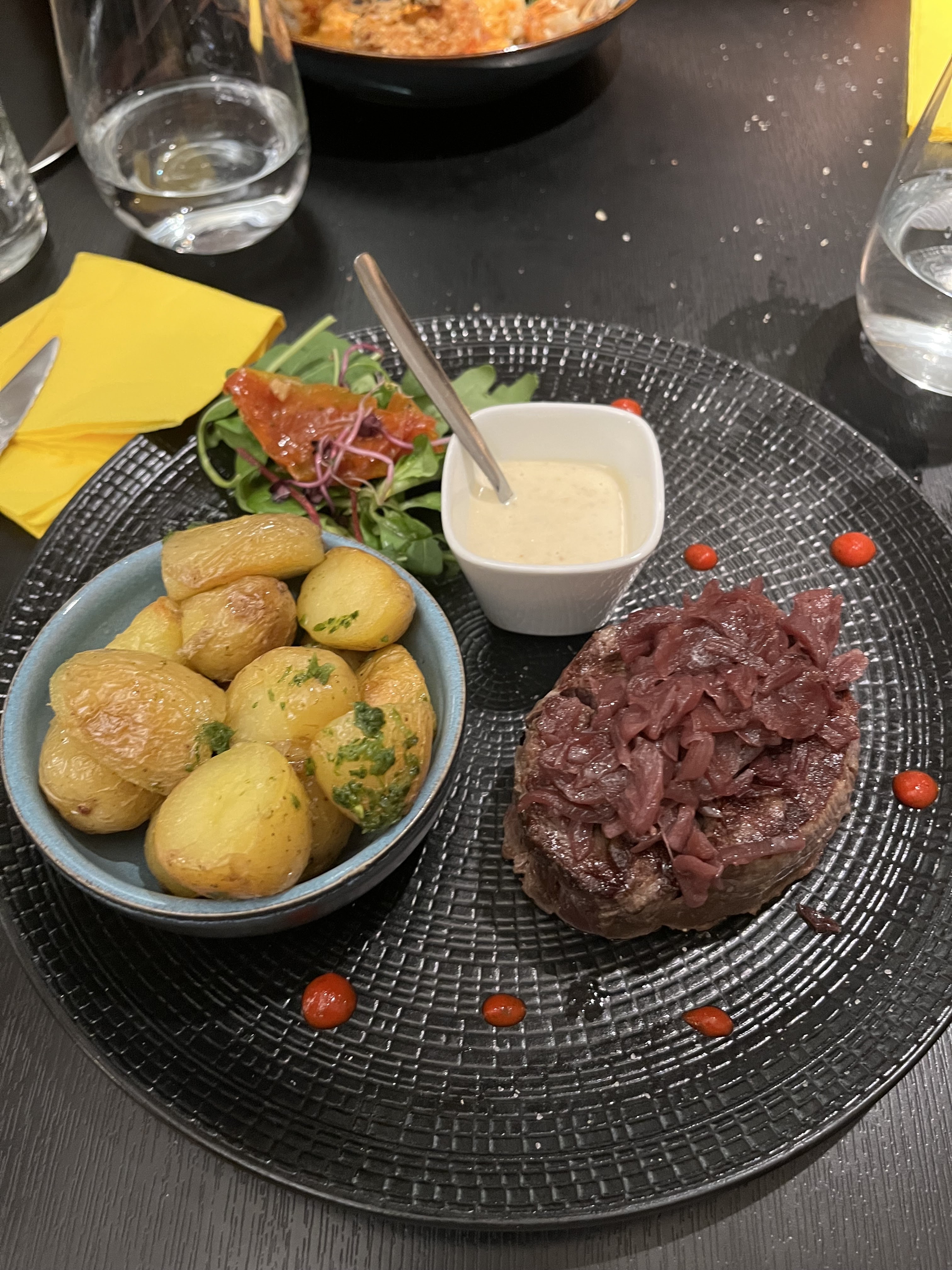 Très bonne surprise ! Restaurant qui ne paie pas de mine de l’extérieur mais tout était parfait. Peu de plats présentés à la carte mais tant mieux, tout était excellent. L’accueil était impeccable, la décoration très mignonne et surtout pas excessif surtout pour la qualité de la viande servie. Je recommande à 100% ! Un sans faute