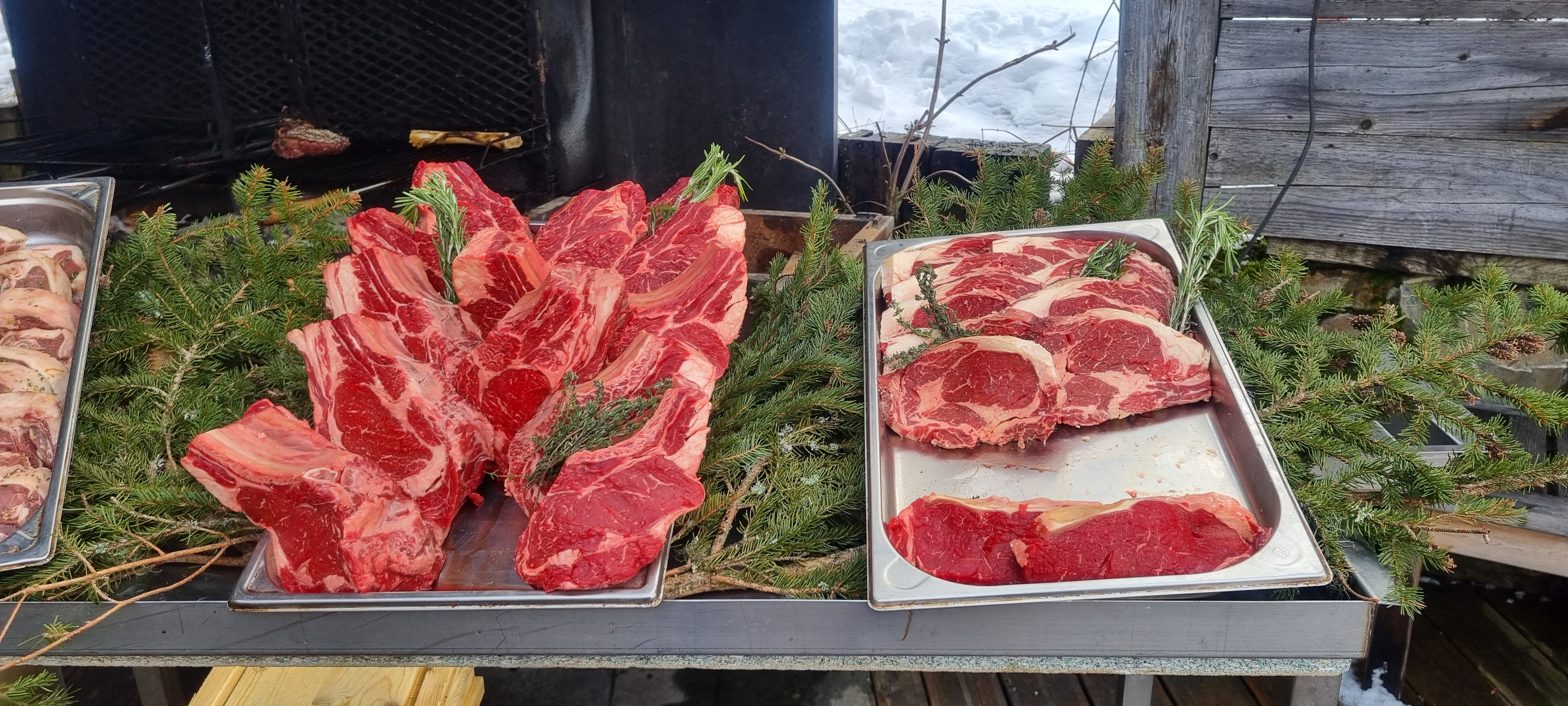 Excellentes vues sur les montagnes. Très bonne nourriture. Barbecue frais. Délicieux desserts. Réservez une table en terrasse, ça vaut le coup