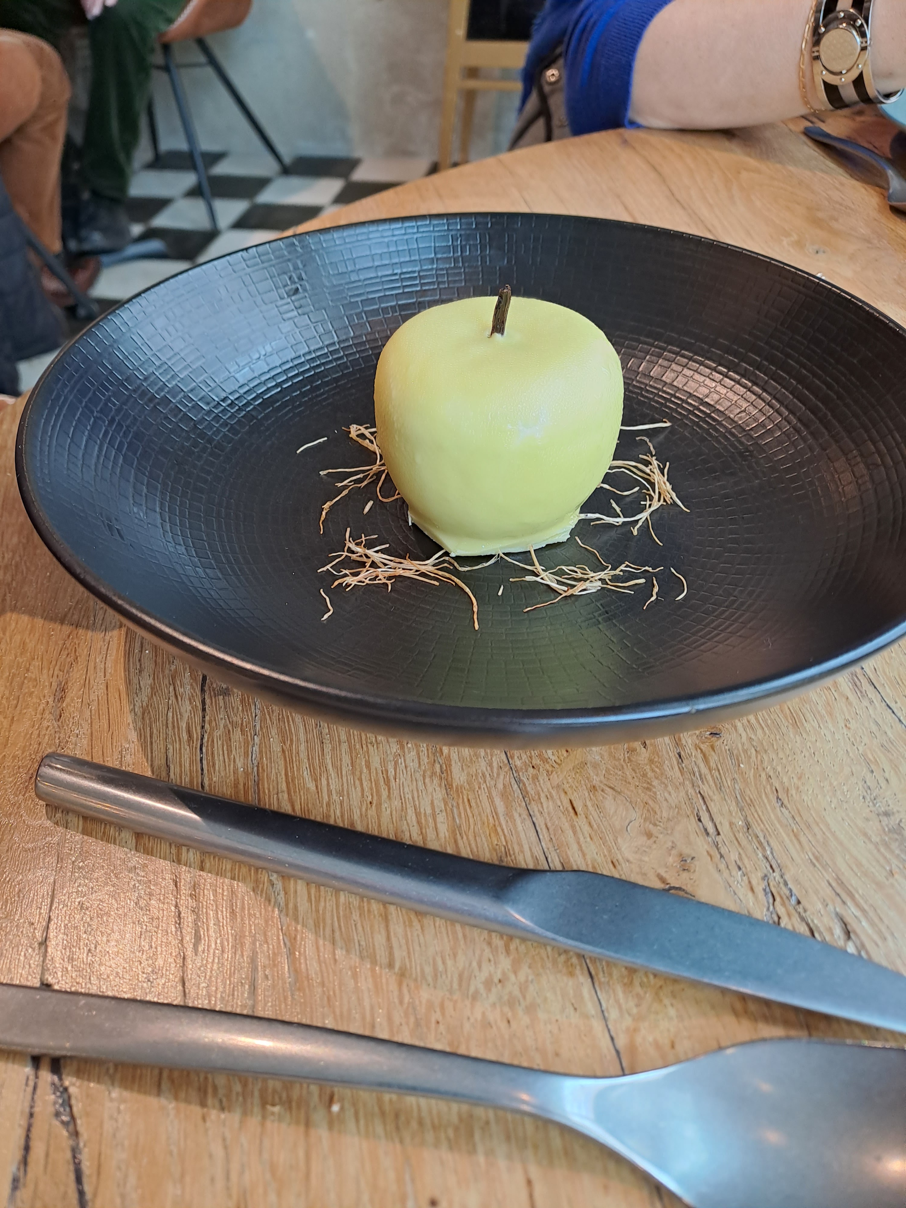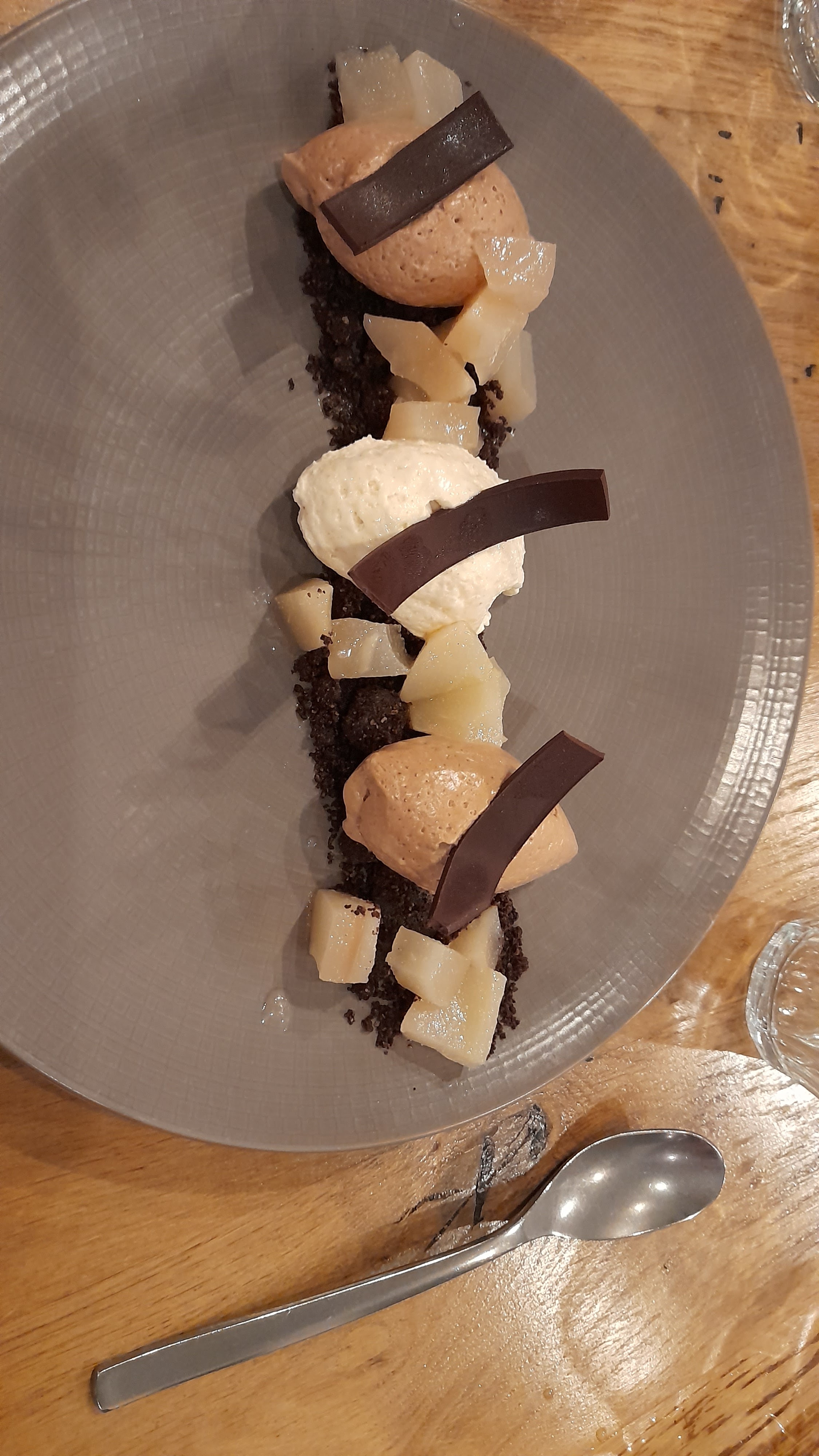 Jamais déçue ! Ce restaurant est top de chez top! Menu du soir à 30 euros, pour entrée, plat et dessert, avec une cuisine excellente, gourmande et très très bien présentée. Le cadre est super sympa aussi ! Les photos correspondents à : Entrée : Escargots, crème d’ail et huile de persil. Dessert 1 : Poire, caramel. Dessert 2 : La pomme s’accompagne de champignons Le dessert au champignons, était une énorme surprise ! Du champignons crus avec des pommes cuites et de la chantilly ? Et bine c'est super bon !!