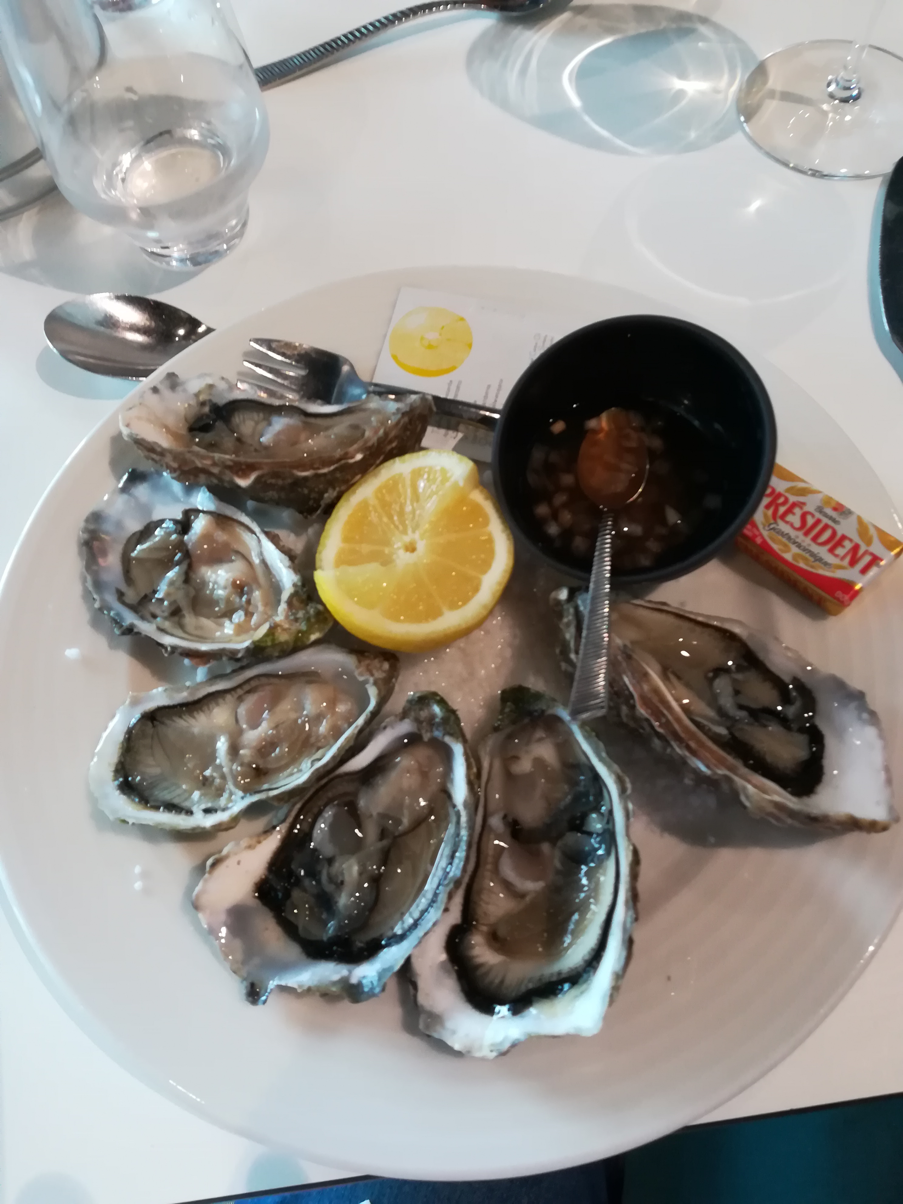 Nous avons eu un très bon repas, des huîtres super fraîches et du très bon poisson ! Et une bouteille d'excellent Chordonay !