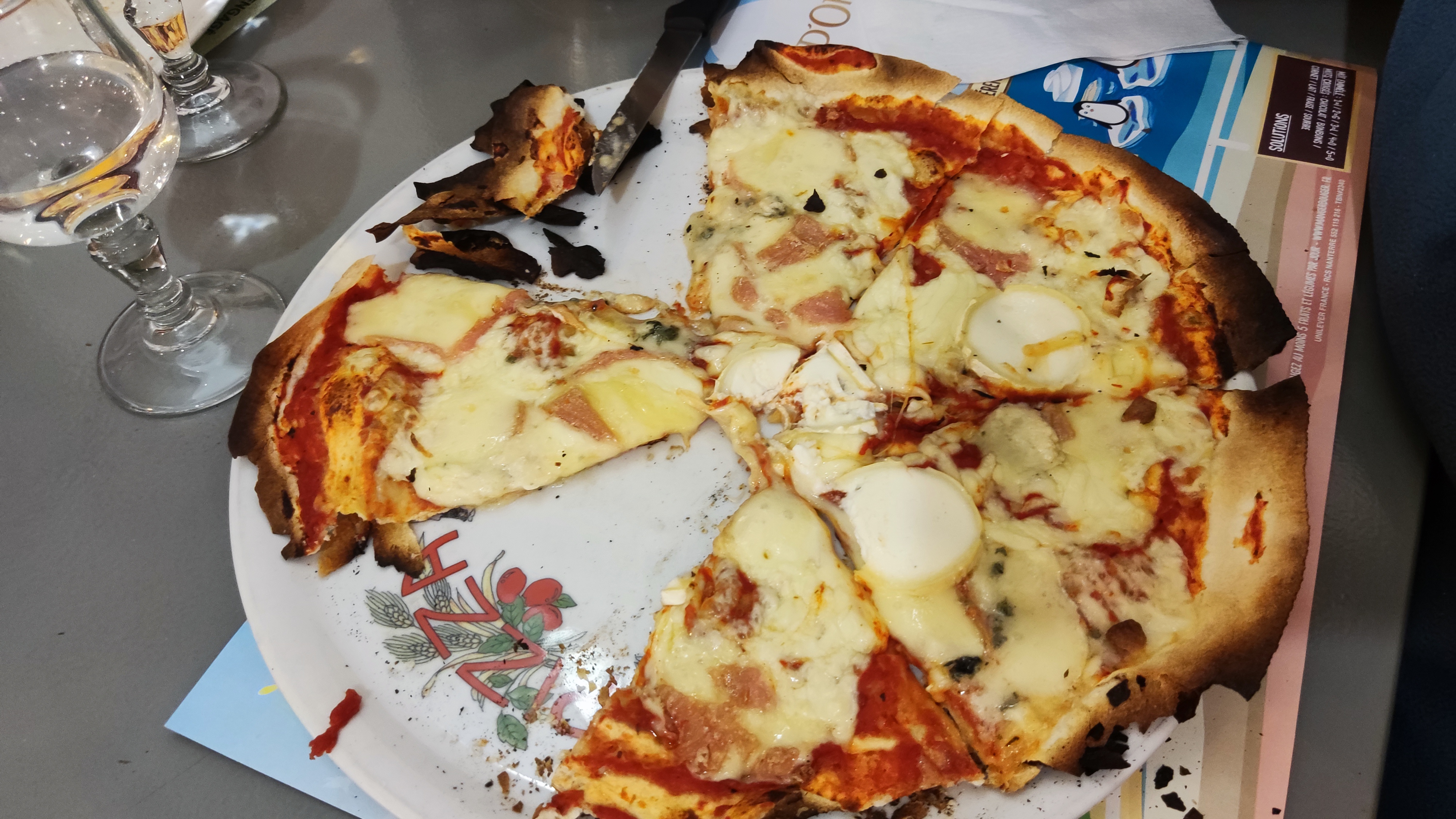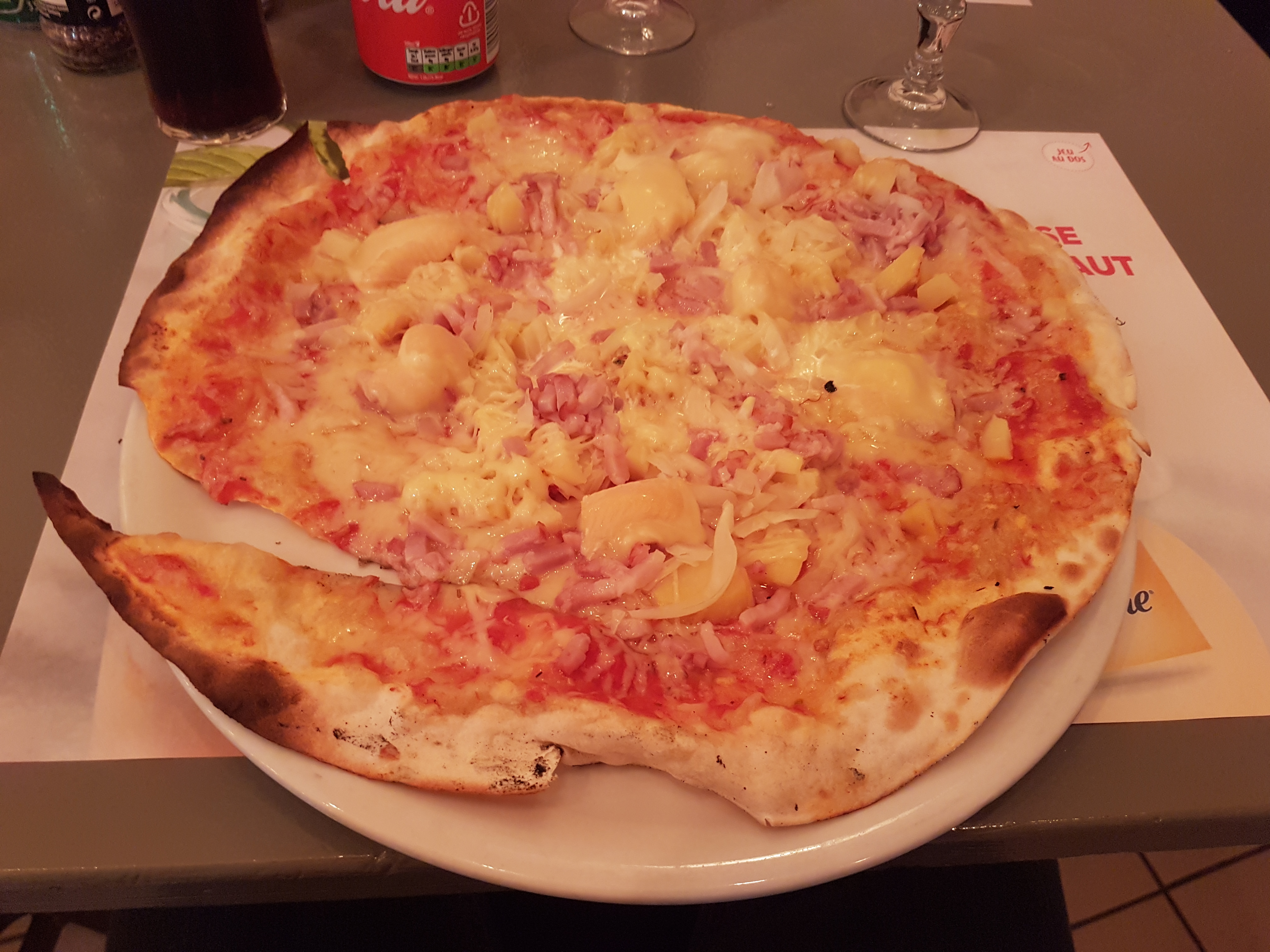 La pâte à pizza est très fines comme une pâte à flamenkuch, la garniture ne tiens même pas. Cependant les serveurs plutôt agréables, mais c’est bien beau de mettre un costard avec des chaussures de randonnée, à part pour une livraison en haut de la montagne, je trouve ça très moyen.