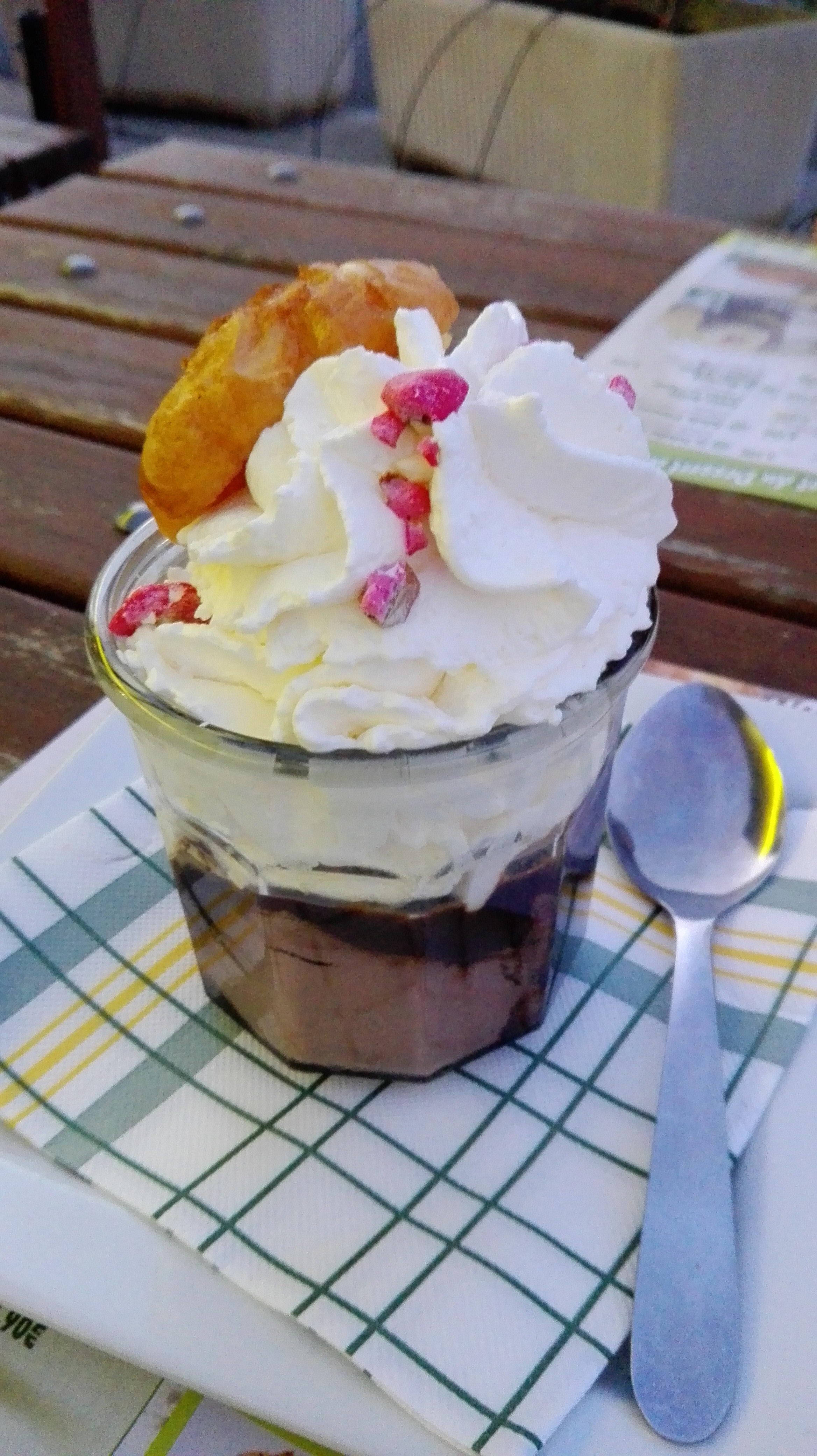 Salade de chèvre chaud très copieuse!Petites marmites à partager,et les desserts sont une «tuerie»!