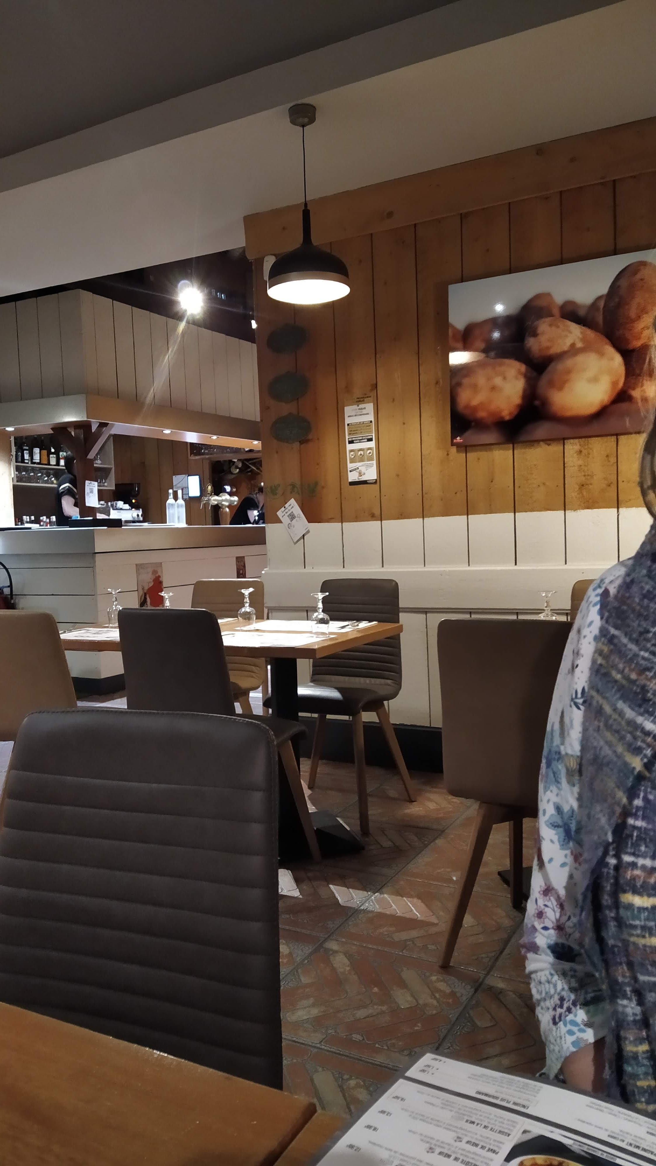 Lieu chaleureux, très bien accueilli, equipe jeune, les pommes de terre sont tendres et très bien cuites, les plats sont très copieux. Tables de 4 avec deux enfants, 5 étoiles pour tout le monde. [Seule chose dérangeante, les clients qui râlent pour un rien ! 3 semaines d'attente chez le docteur, 10min pour un plat, détendez-vous]