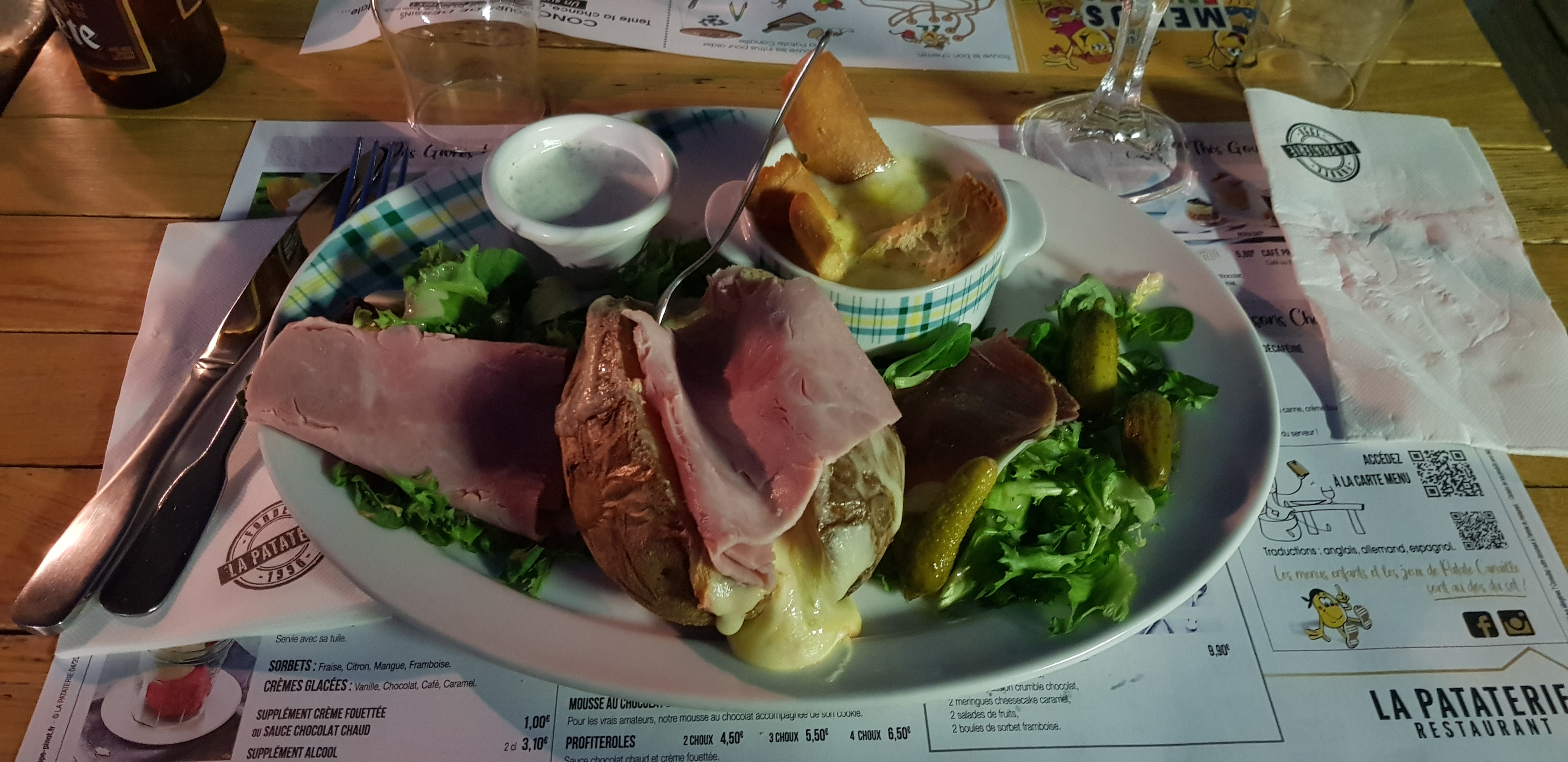 Comme il n'y a plus de restaurant La Pataterie à Angoulême, et de sortie au Futuroscope ce samedi, nous avons eu l'occasion d'aller à La Pataterie de Chasseneuil du Poitou. C'est très bon mais le service très long.