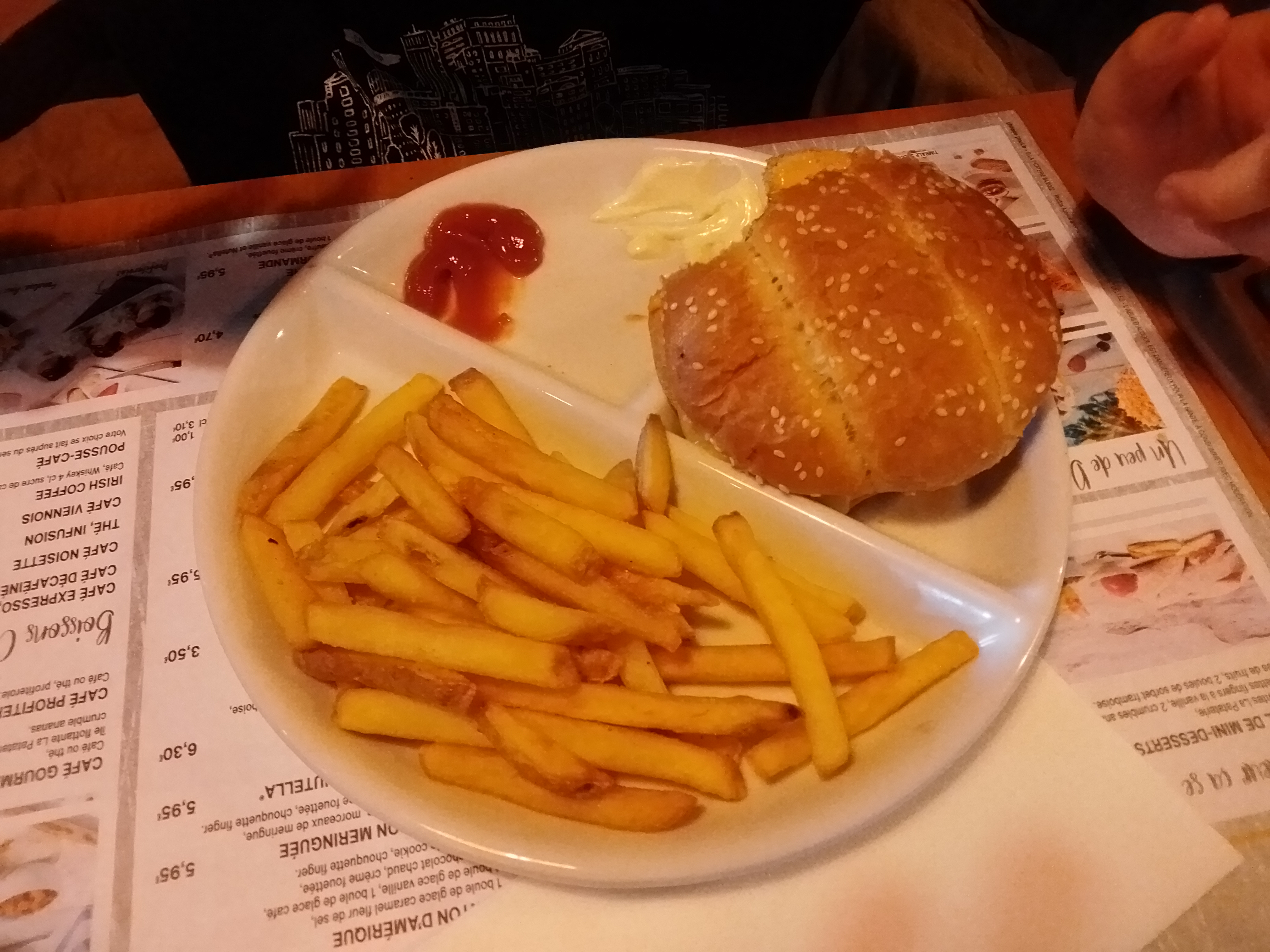 Restaurant avec de la bonne cuisine et un personnel agréable Malheureusement les frites n’avaient pas l’air maison et plat un peu cher pour 2 morceaux de patates avec un steack haché et un morceau de fromage 😅