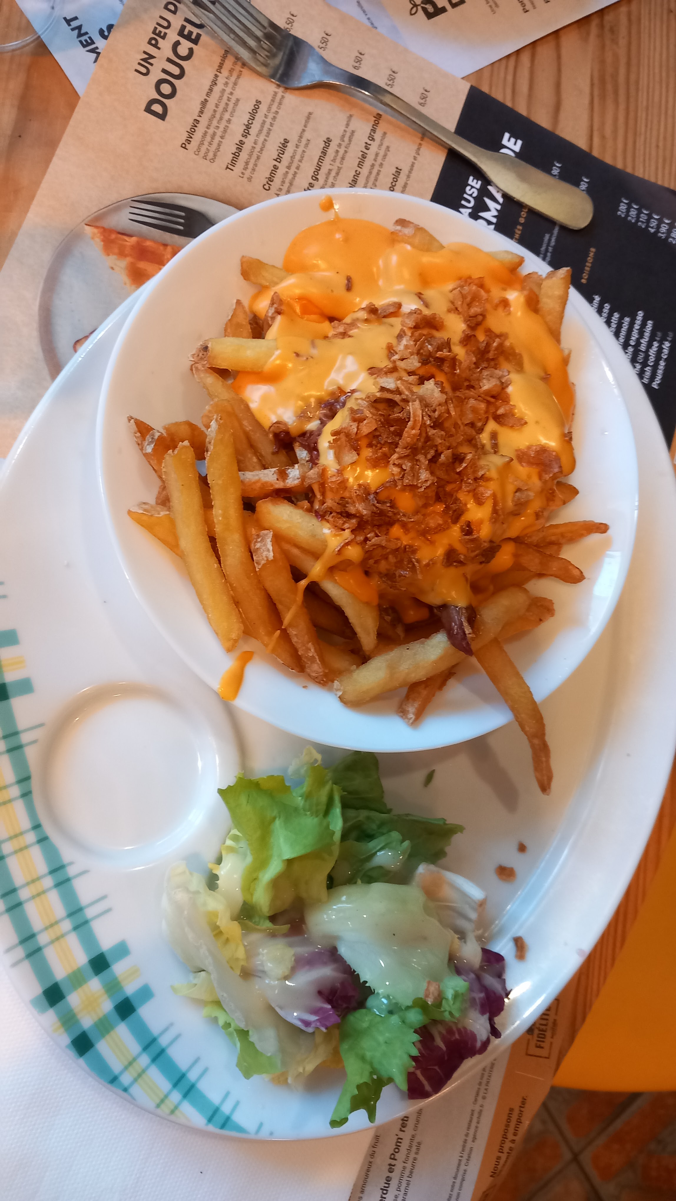 La nourriture est toujours bonne vive le fromage 😝. Par contre parfois faut pas être pressé car la salle est svt dépassé et parfois l'apéro prend 1 h, une autre fois il on servi toutes nos plat Sauf celui de mon fils Il a eu son plat on était au Dessert . La réponse de la serveuse c'est de la faute de la cuisine !!! 🤔Pas une excuse ni un geste de la part de la gérante... À chaque fois que j'y vais je pense que j'ai la poisse.