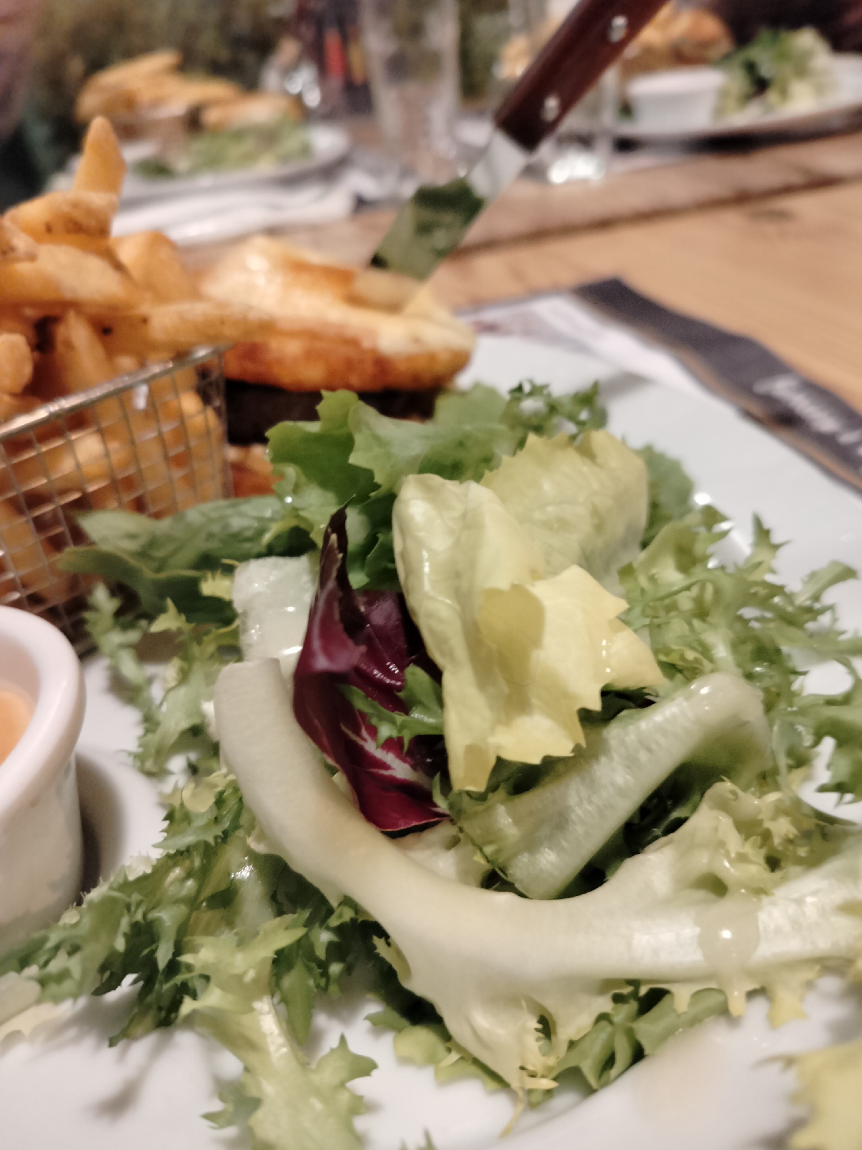 Le Burger était bon, mais l accompagnement était froid et il y avait du vieux mélangé au frais (mauvais goût), la salade n était pas belle