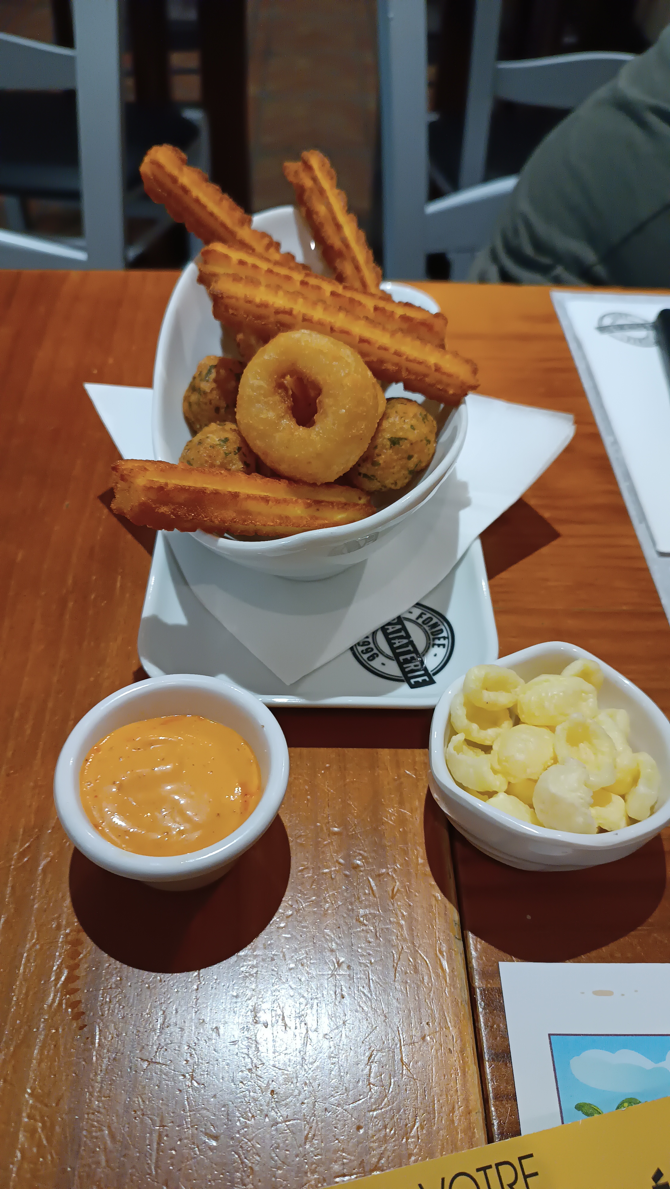 Assez déçu de la qualité de la nourriture. Dans un restaurant qui s'appelle la pataterie on pourrait au moins s'attendre de bonnes frites et des bonnes Bravas... Cela n'a pas été à la hauteur pour nous. Rien à dire par rapport au service, les serveurs ont étés très sympas !