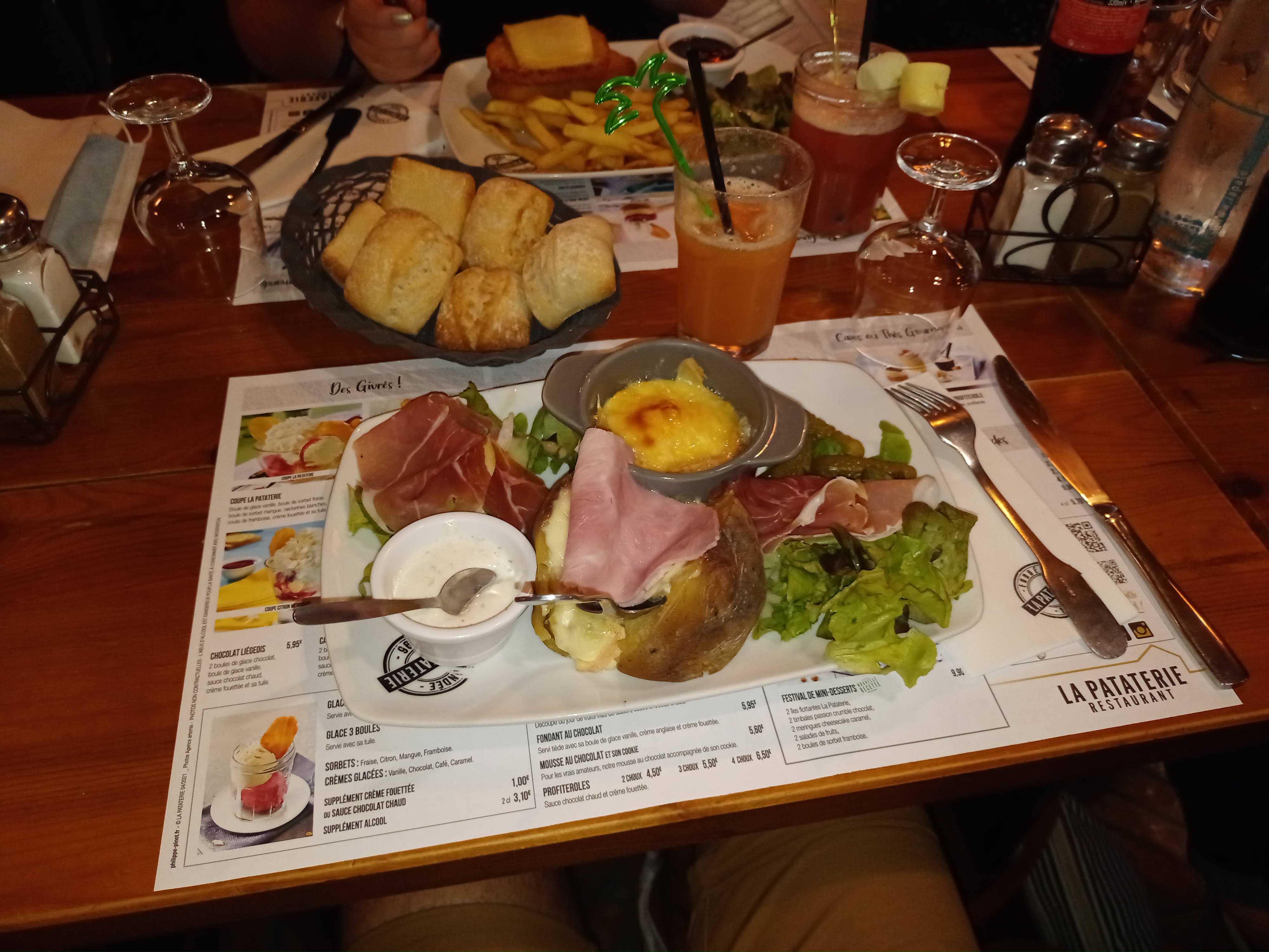 Plat copieux c'est vraiment un lieu où aller en famille lorsqu'on aime les pommes de terre . c'est vraiment originale ce que je déplore c'est l'accueil que l'on a eu avec mes enfants le serveur étais agacé et ne nous a pas bien servi et en soufflant ! J'estime que quand on paye une addition a quasiment 100 € on a droit un peu de respect. Dommage parce que le concept est sympa.