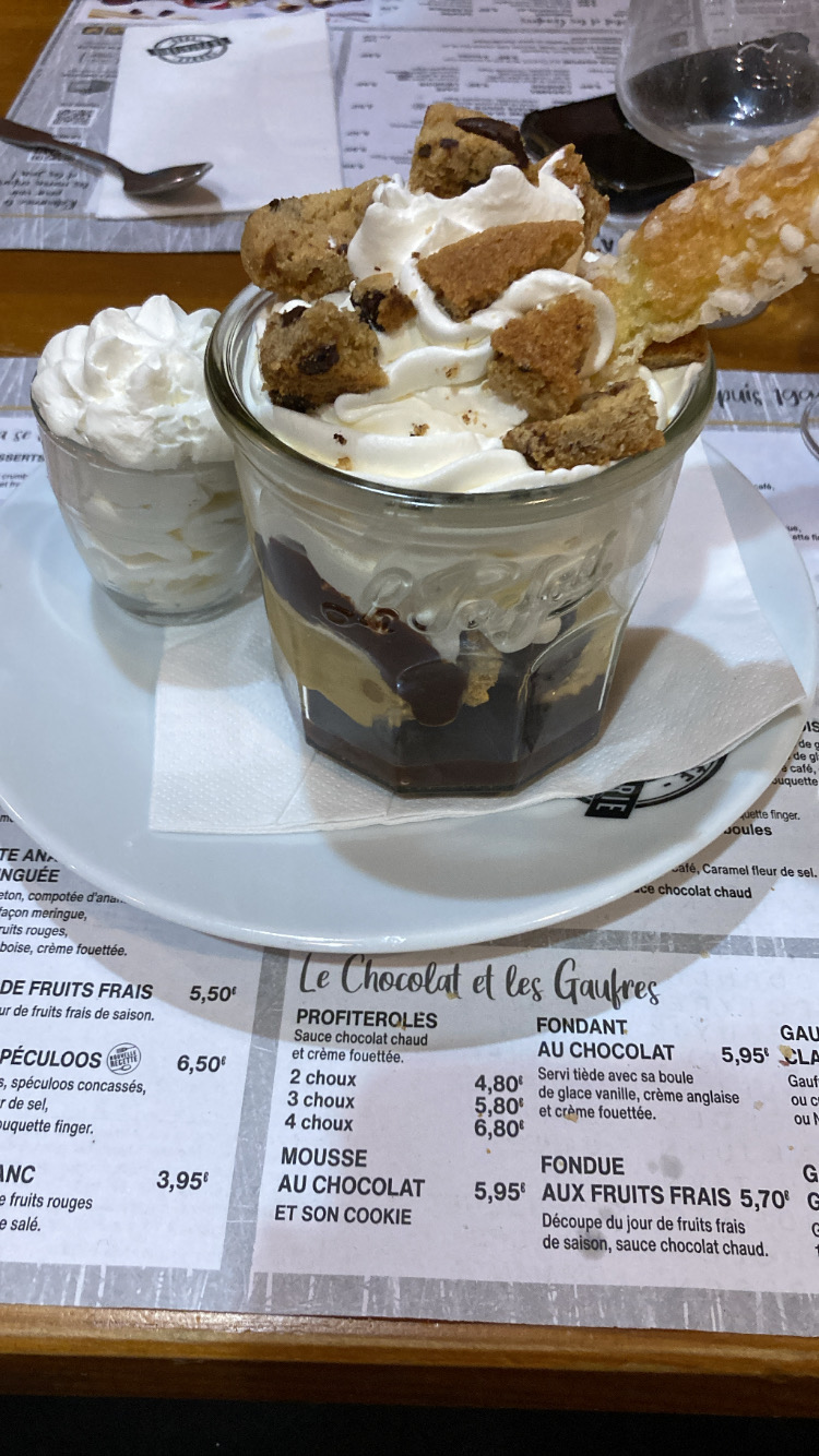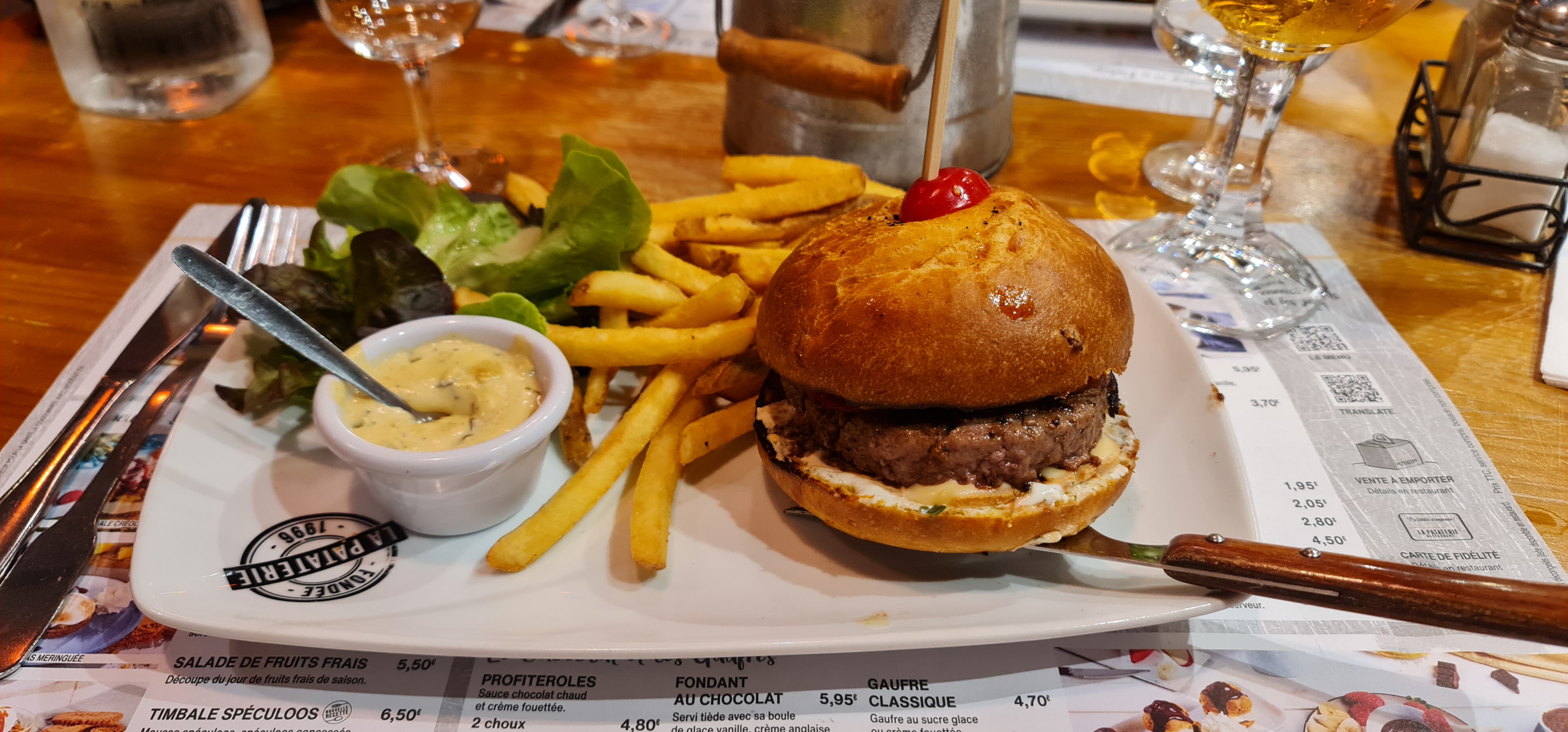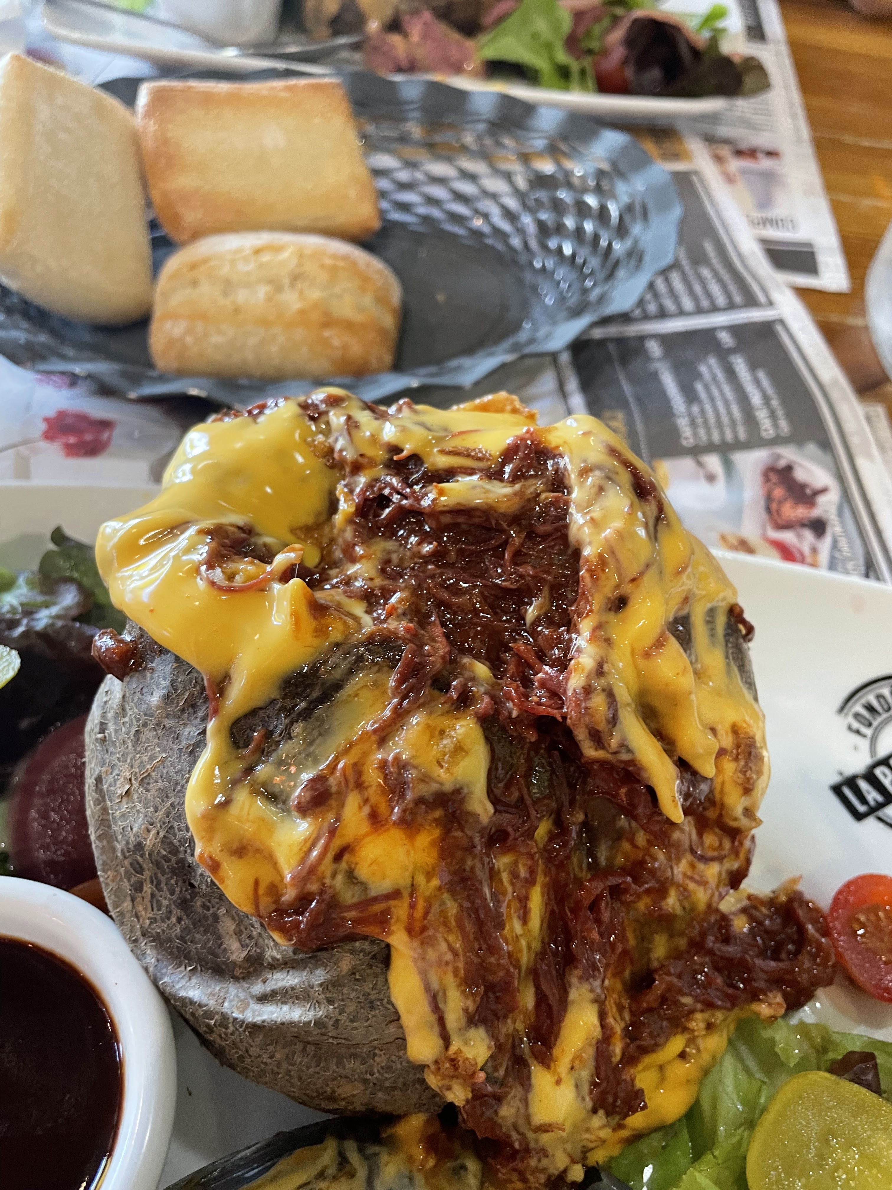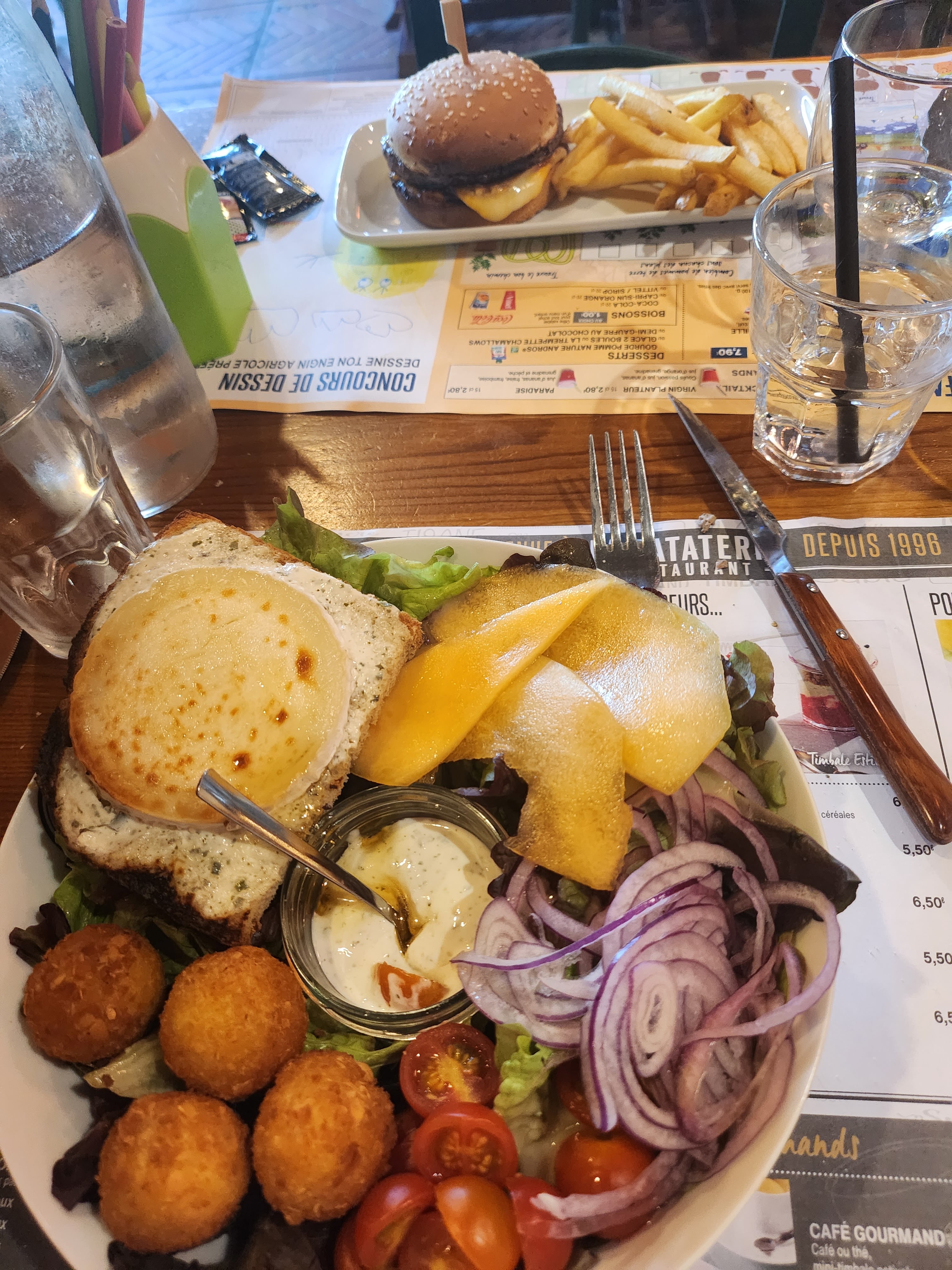 Un délice tout simplement des serveurs au top souriant blagueur , un service assez rapide, et tout simplement exquis vous en avez pour votre argent je suis une grosse mangeuse j'ai donc pris burrito de patate super bon 😍😍😍 Accompagné de salade et frite un délice, une bonne viande Limousine dans une fine galette de pomme de terres et un bon goût de haricots rouge avec petits oignons roquette tomates cerise jaune chedard sur le dessu pour 13.50€ Le dessert on en parle pas une tuerie ( glace vanille glace café chocolat fondu crème fouetté tuile morceaux de cookie) 5,95€ très copieux on a plus faim après tout ça 👌🥔🥰 Chéri a pris gaufrette campagnarde ( fromage patate gaufre viande gaufre avec frite salade et sauce ) 15.95 Dessert brioche façon pain perdu ( brioche crème fouetté purée de bananes morceaux de banane coulis de chocolat ) 6.90€ Nous nous sommes régaler pour moi c'était une première pour lui non il était déjà venu ,nous reviendrons👌!!!
