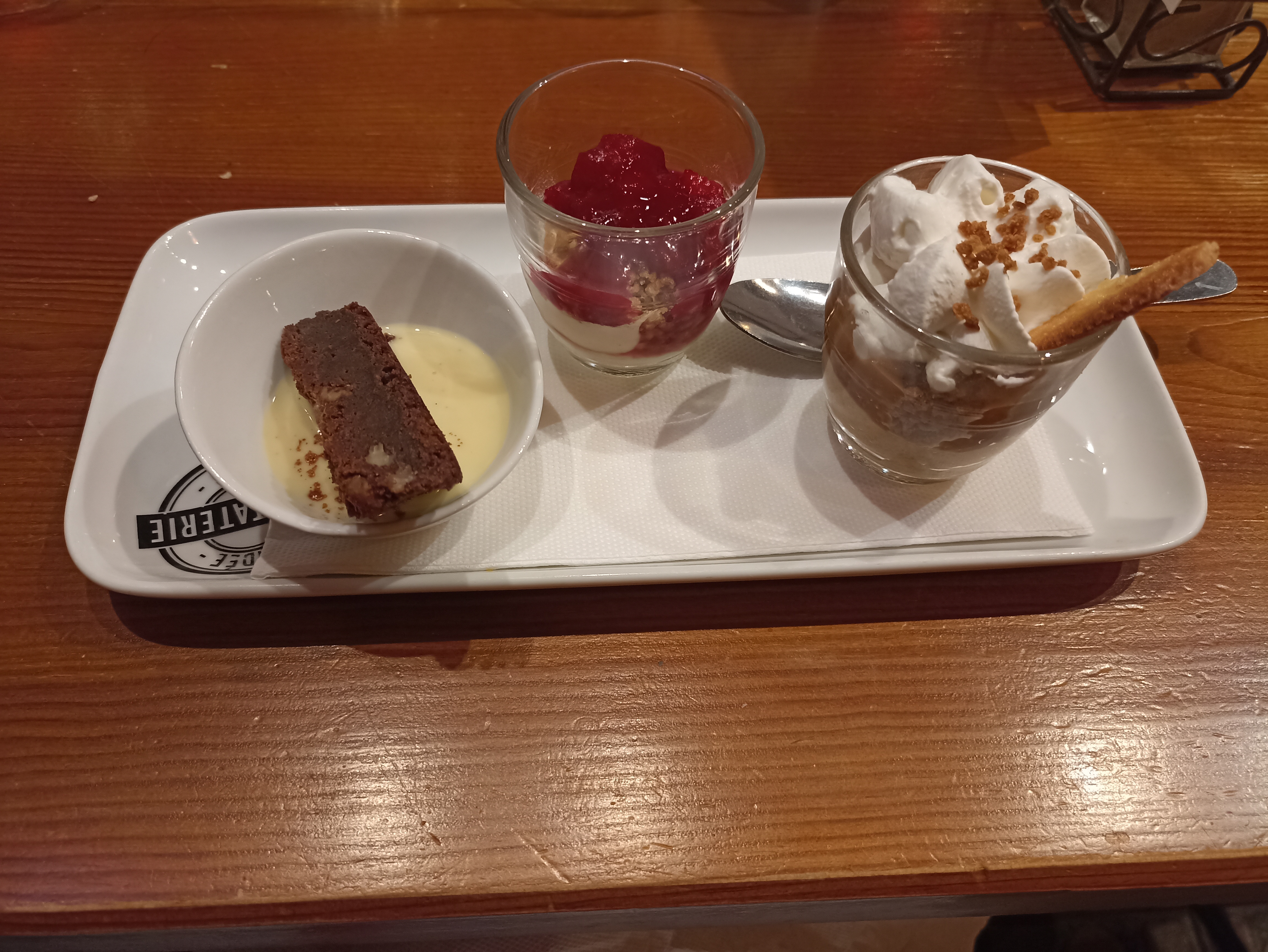 Nous avons bien mangés . Le dessert étais parfait ils ont eu la gentillesse de me changer le chocolat pour du Nutella . La serveuse étais très sympathique .
