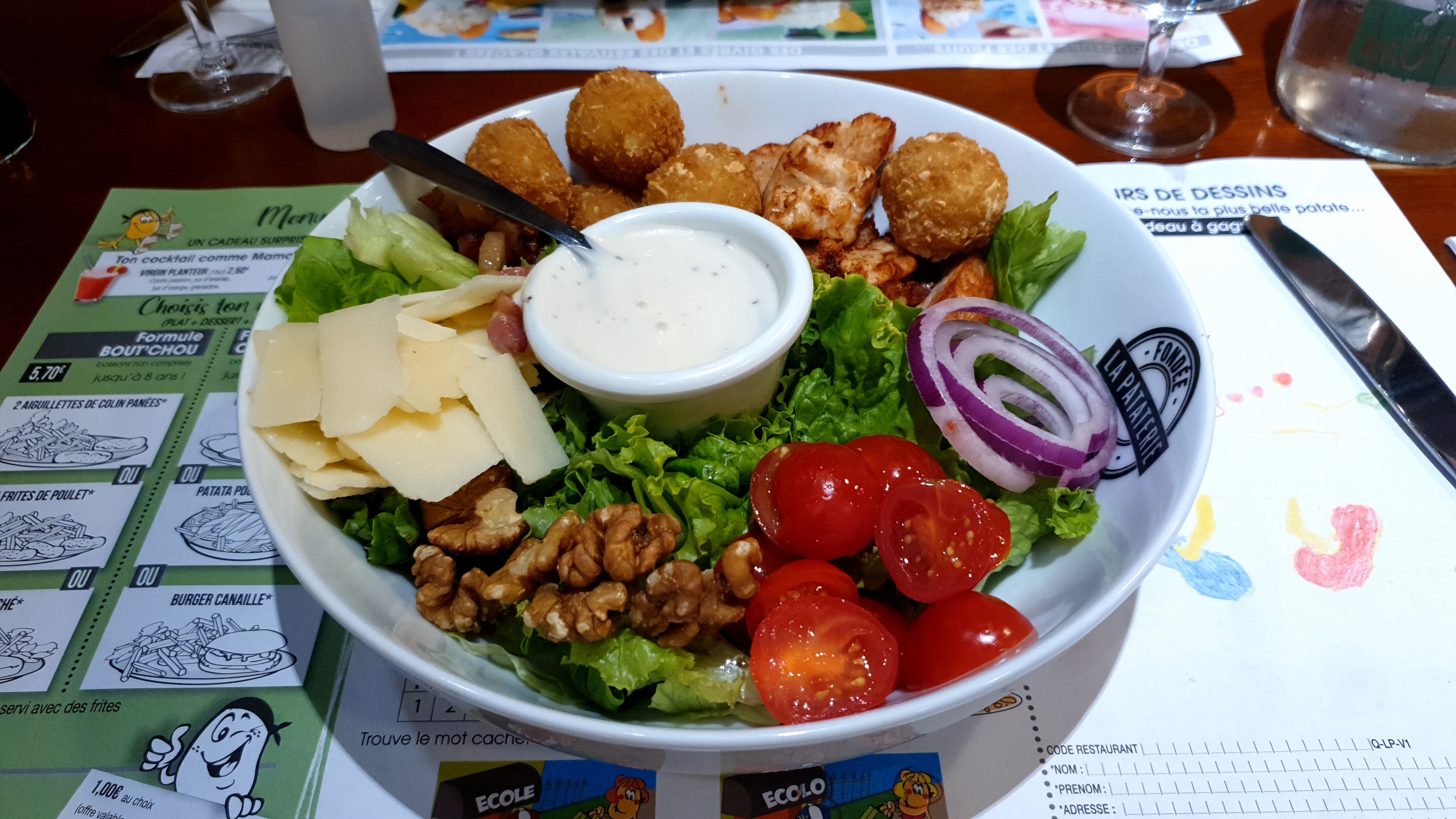 Aucun goût, du surgelé sûrement pour le contenu des salades du moins, mais personnel tres sympa.
