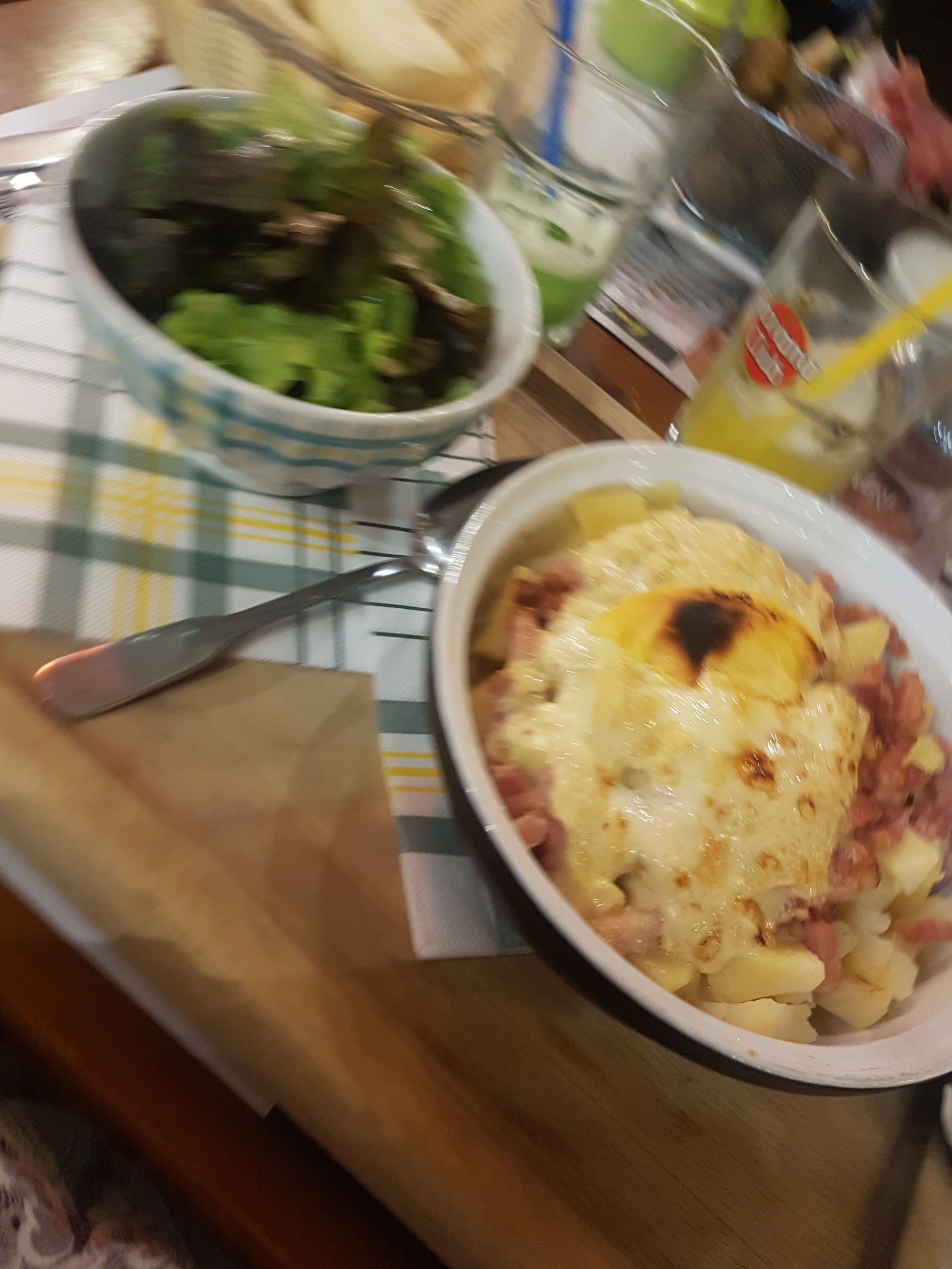 Très mauvais retour.... Pour ma part j'ai commandé une assiette québécoise ... Très mal présenté tiède quelques frites surgelés un haché de porc posé comme ça à la cuillère.... Salade verte avec a peine de sauce vinaigrette et même pas assaisonnée....Ça n'a même pas pris la peine de mélanger puis de faire gratiné au four comme la dernière fois où j'ai été.... Mon compagnon tartiflette qu'il n'a pas pu terminer car ce n'était pas terrible non plus très déçu d'avoir du régler la note d'un repas ou nous avons pris aucun plaisir.....