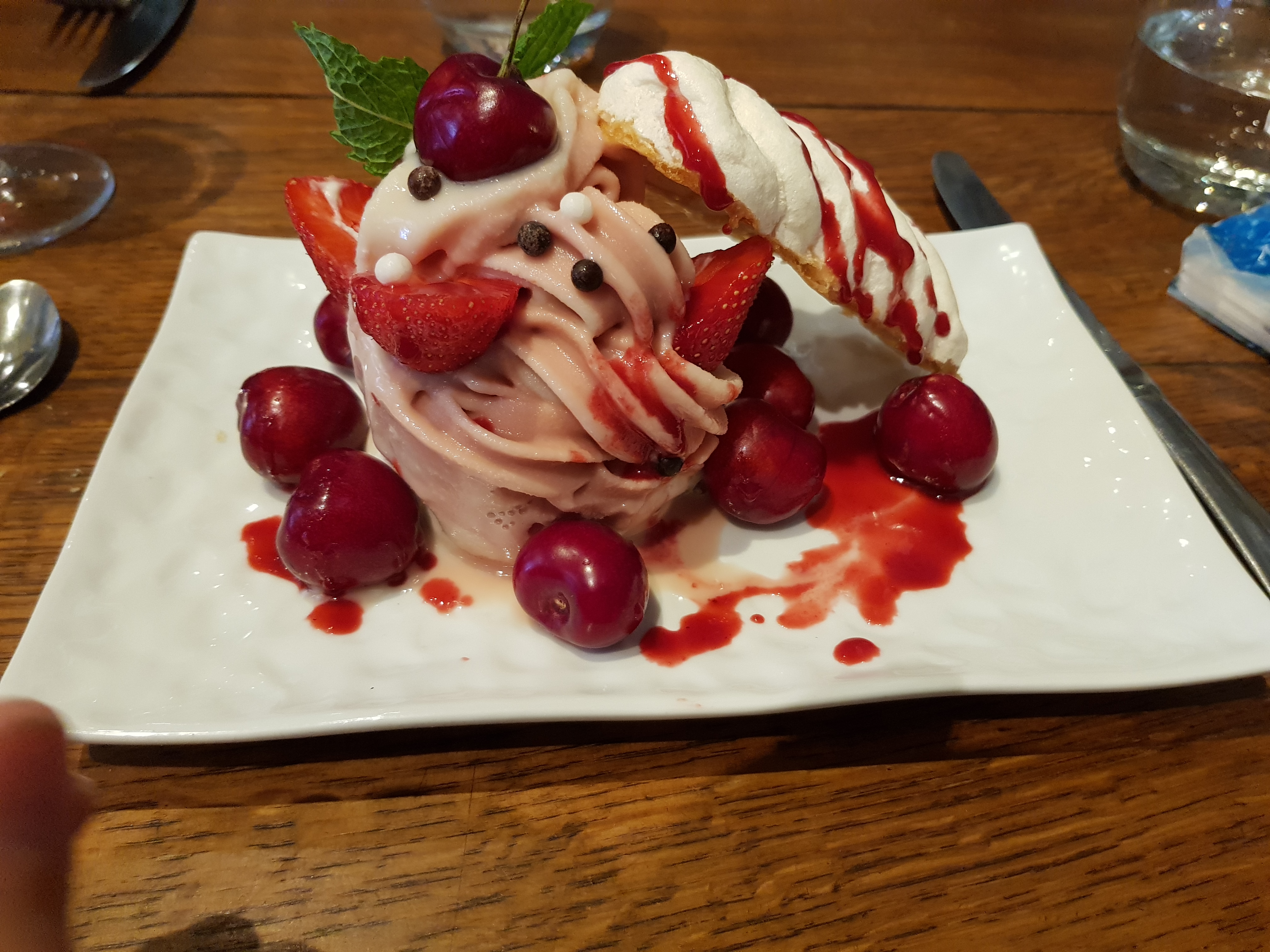 Le cadre et le service dépassent largement la qualité de la nourriture. L’entrecôte était bonne mais malheureusement avec beaucoup de gras. Le gratin de perche à l’ail des ours était très gras et manquait de goût et le pire était le dessert : un entremet aux fruits rouges qui était vraiment pas frais, je ne l’ai d’ailleurs pas mangé ! La seule chose qui était excellente c’était la bière blanche !