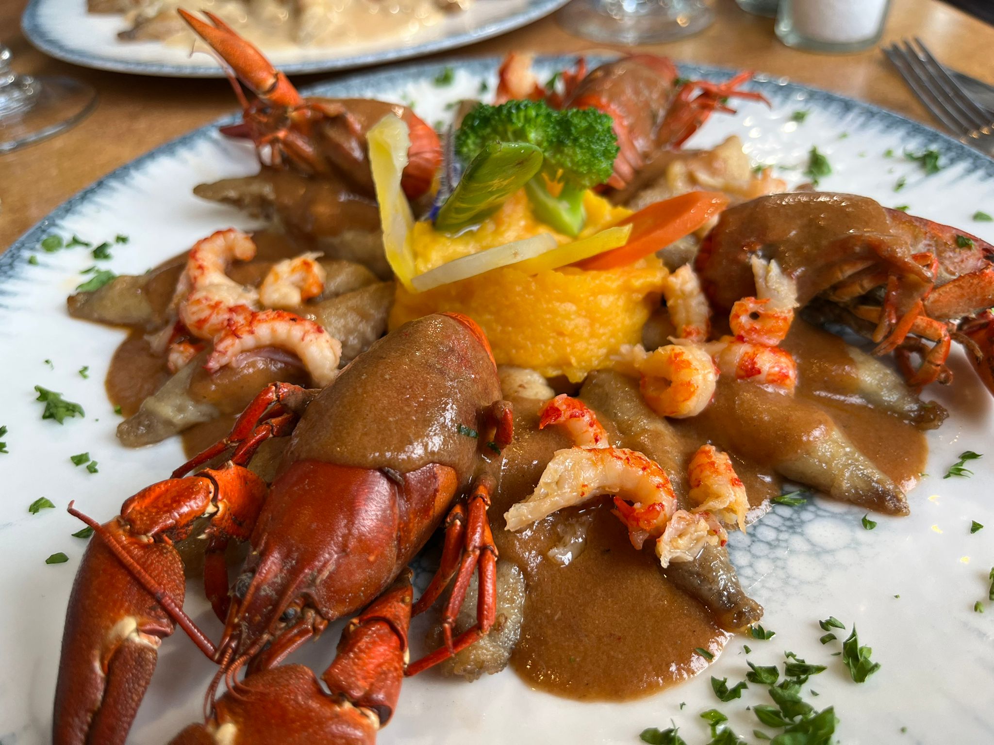 Accueil super sympa au coin de la cheminée. J'ai pris des perches écrevisse super bonne mon mari a pris le civet de faire avec la polenta. Tout est excellent je vous le recommande .