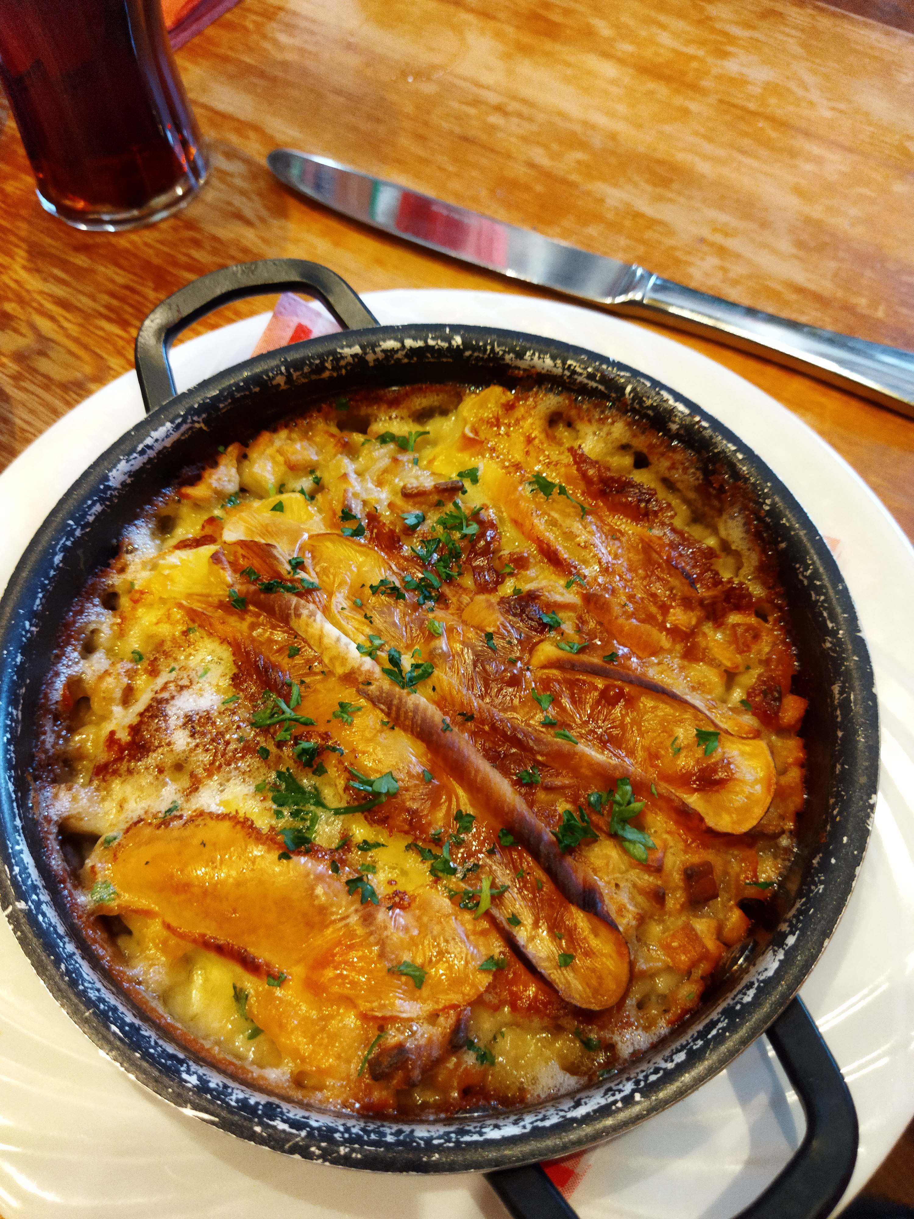*Recherche Lardons Désespérément ou l'histoire de la croziflette végétarienne* Il était une fois un repas rassemblant 4 convives. L'un prit le plat de perche, très bon. Les trois autres prirent la croziflette. Malheureusement, aucun signe des lardons, pourtant bien indiqués sur le menu. Étonnés de cette absence, les convives le firent remarquer plusieurs fois à la serveuse, qui ne fut que désolée. Dommage qu'aucun geste n'ait était fait, laissant la disparition des lardons encore inexpliquée. Les ingrédients indiqués sur la carte doivent être présents dans le plat, auquel cas, cela s'appelle de la tromperie...