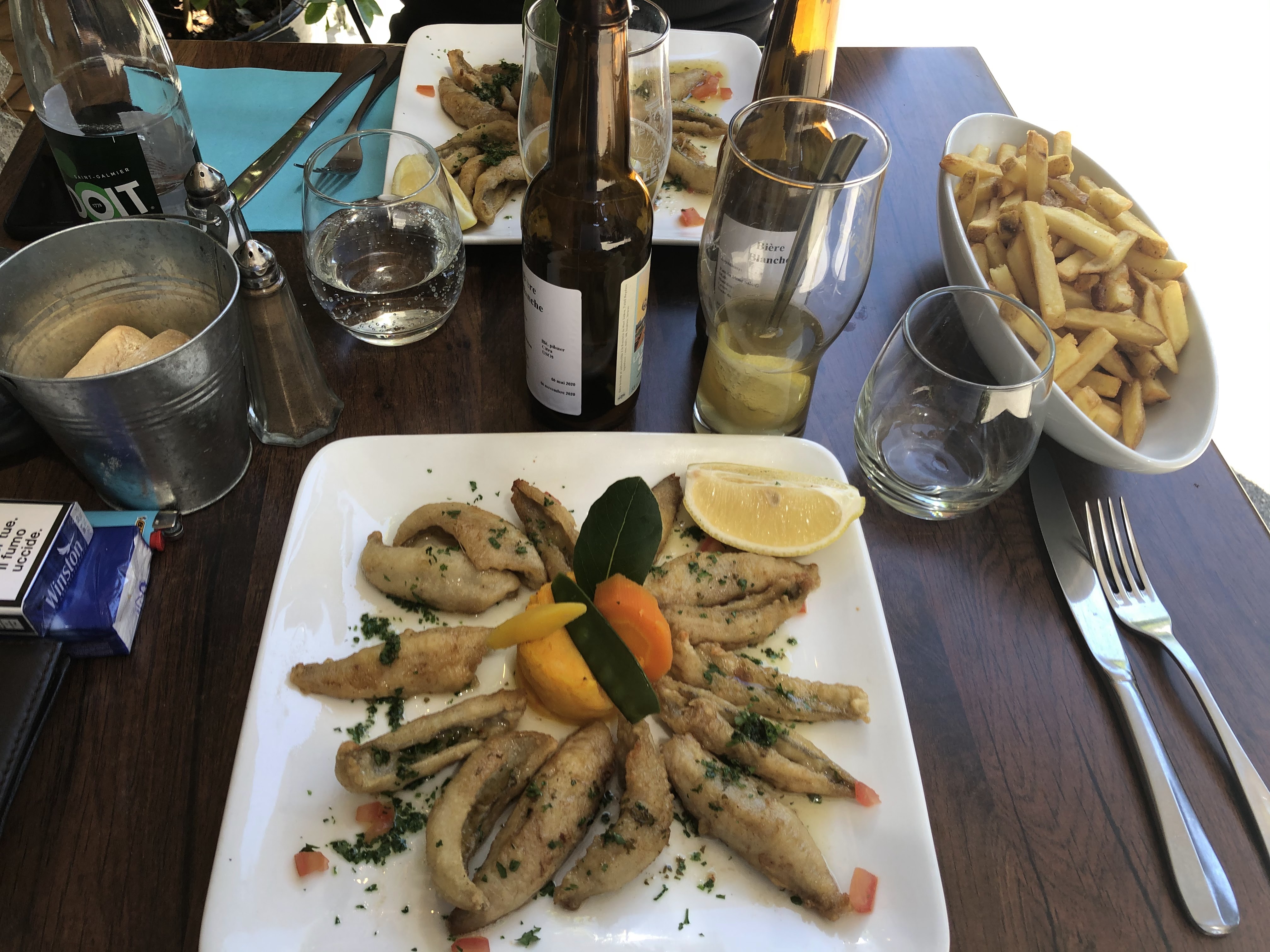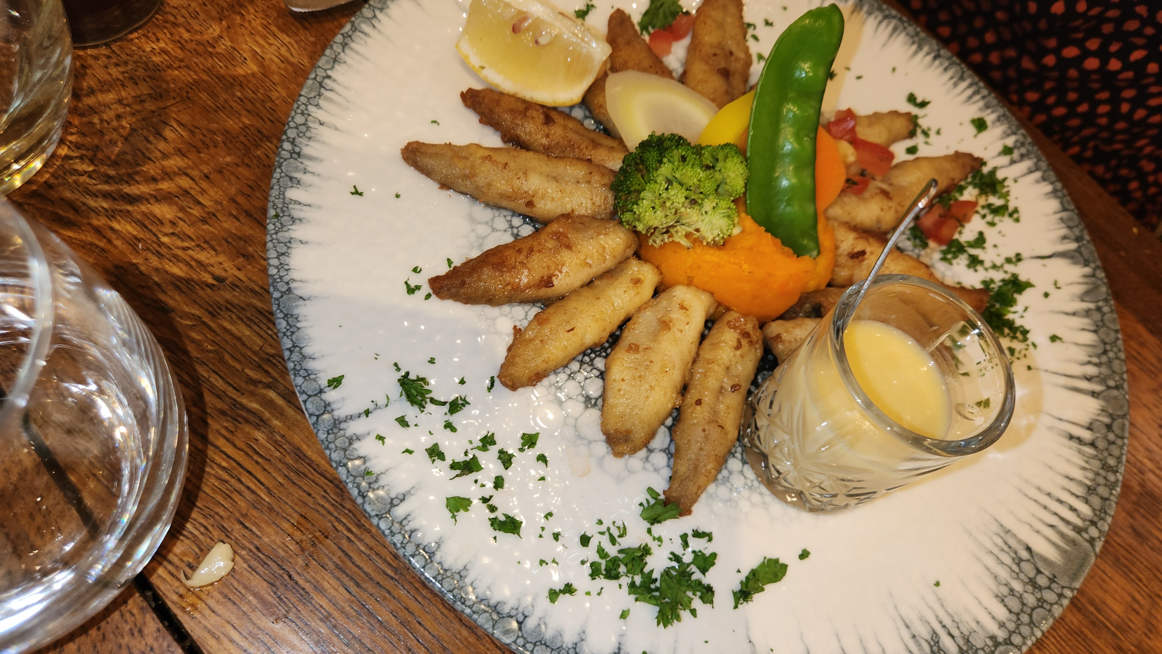 Arrivés pour 3 couverts. Beaucoup de temps pour être servis alors que le restaurant n'était pas plein. Les plats arrivent : c'est froid et très gras. La perche sauce meunière était échouée dans un bain de gras rien à voir avec la sauce meunière. Les autres assiettes : crevettes douteuses. On est parti sans prendre de dessert et de tte façon on ne nous a rien proposé ça tombe bien. Effectivement on ne peut pas frire les desserts pour cacher la fraicheur douteuse. Passez votre chemin quitte à prévoir un bon sandwich !