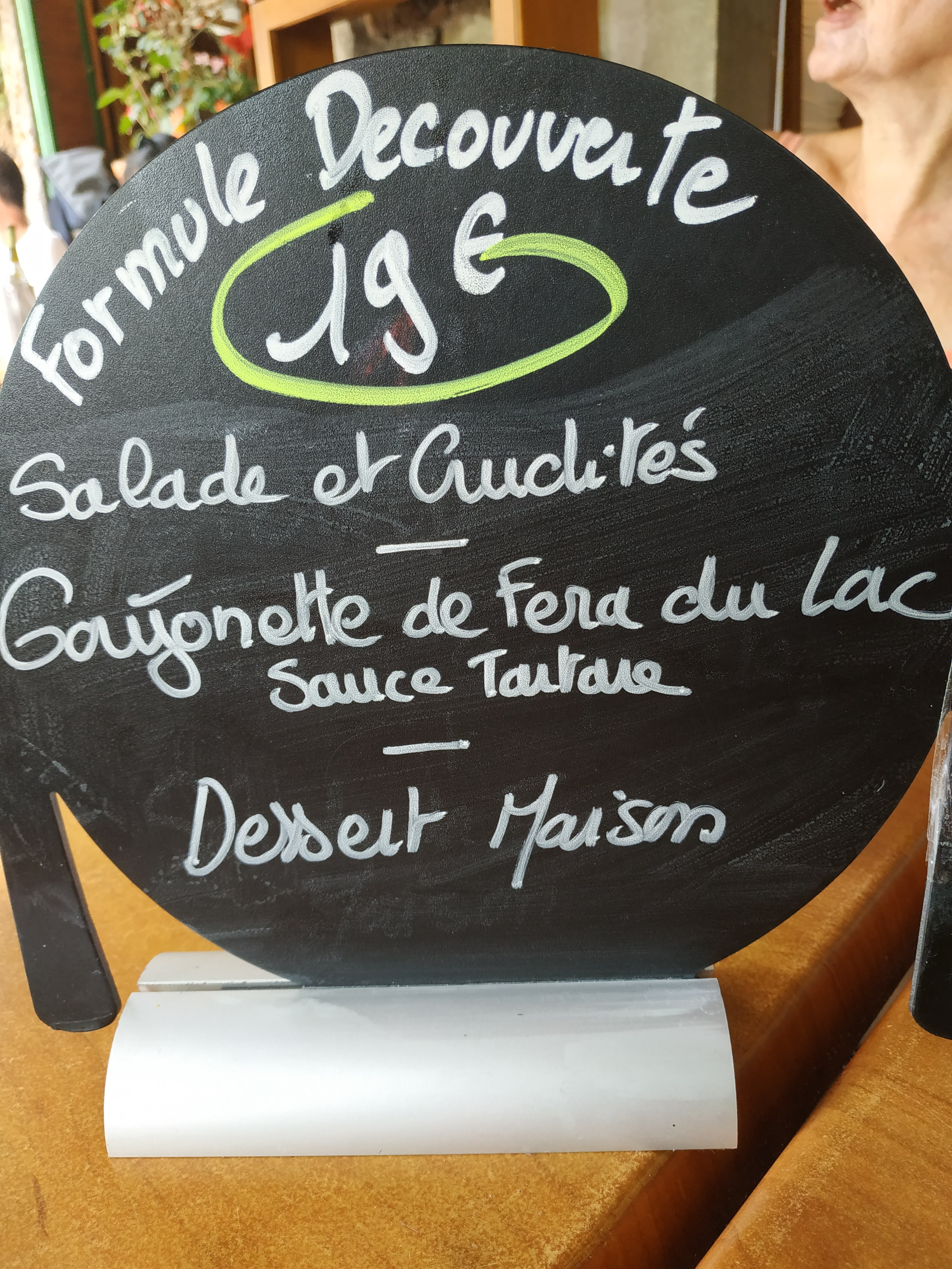 Parfait pour les petits budget ! Menu du jour à 20 euros Entrée Plats Dessert. Très bien placé avec une petite terrasse donnant un aperçu du lac en arrière plan. Les plats étaient délicieux, les quantités très suffisantes et un super dessert maison !