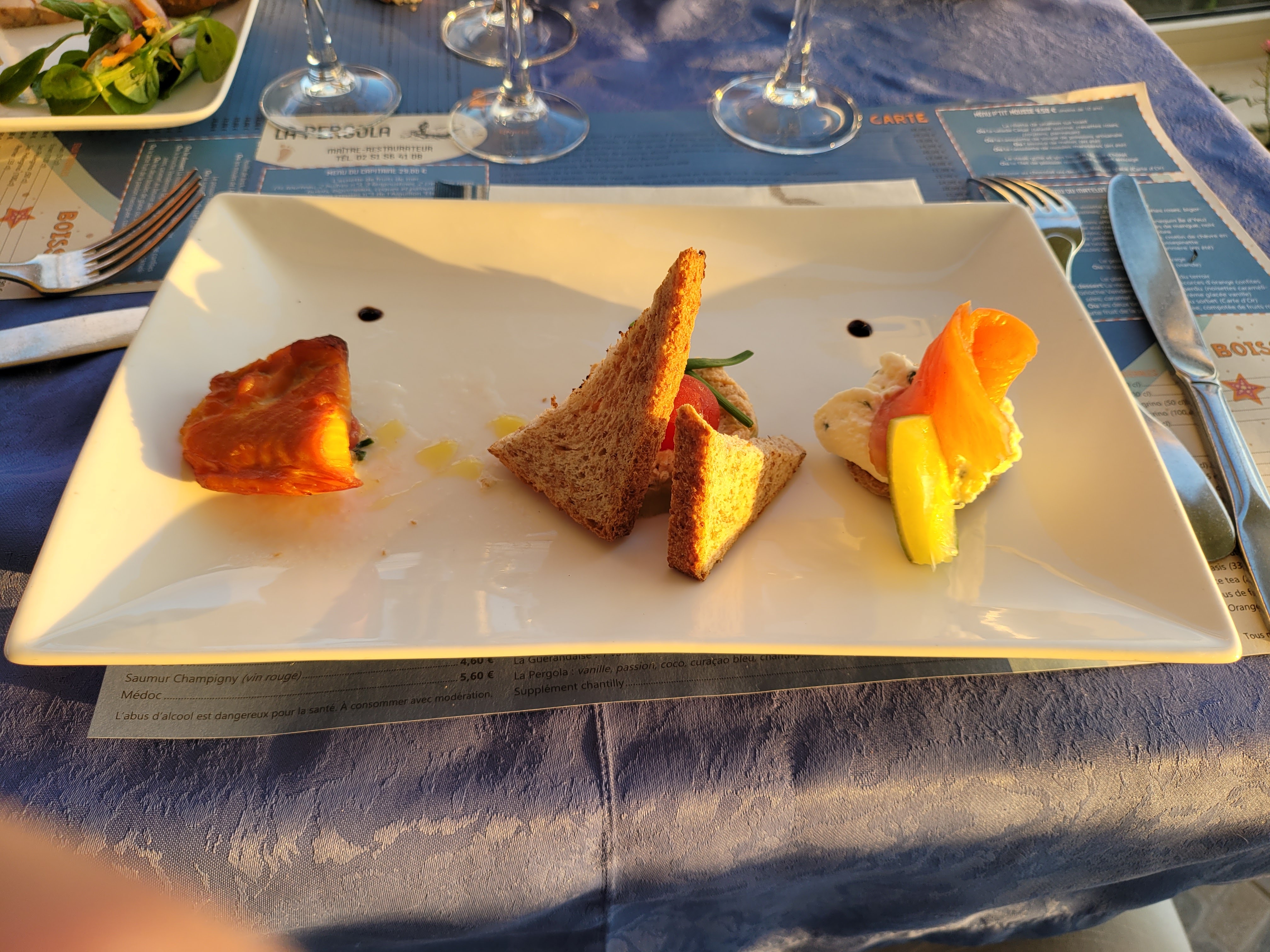 Au hasard de notre périple pause déjeuner à la pergola , régal des papilles , poisson goûteux,légumes de saison fondants à souhait,Belle adresse à refaire. Et puis la vue au top.