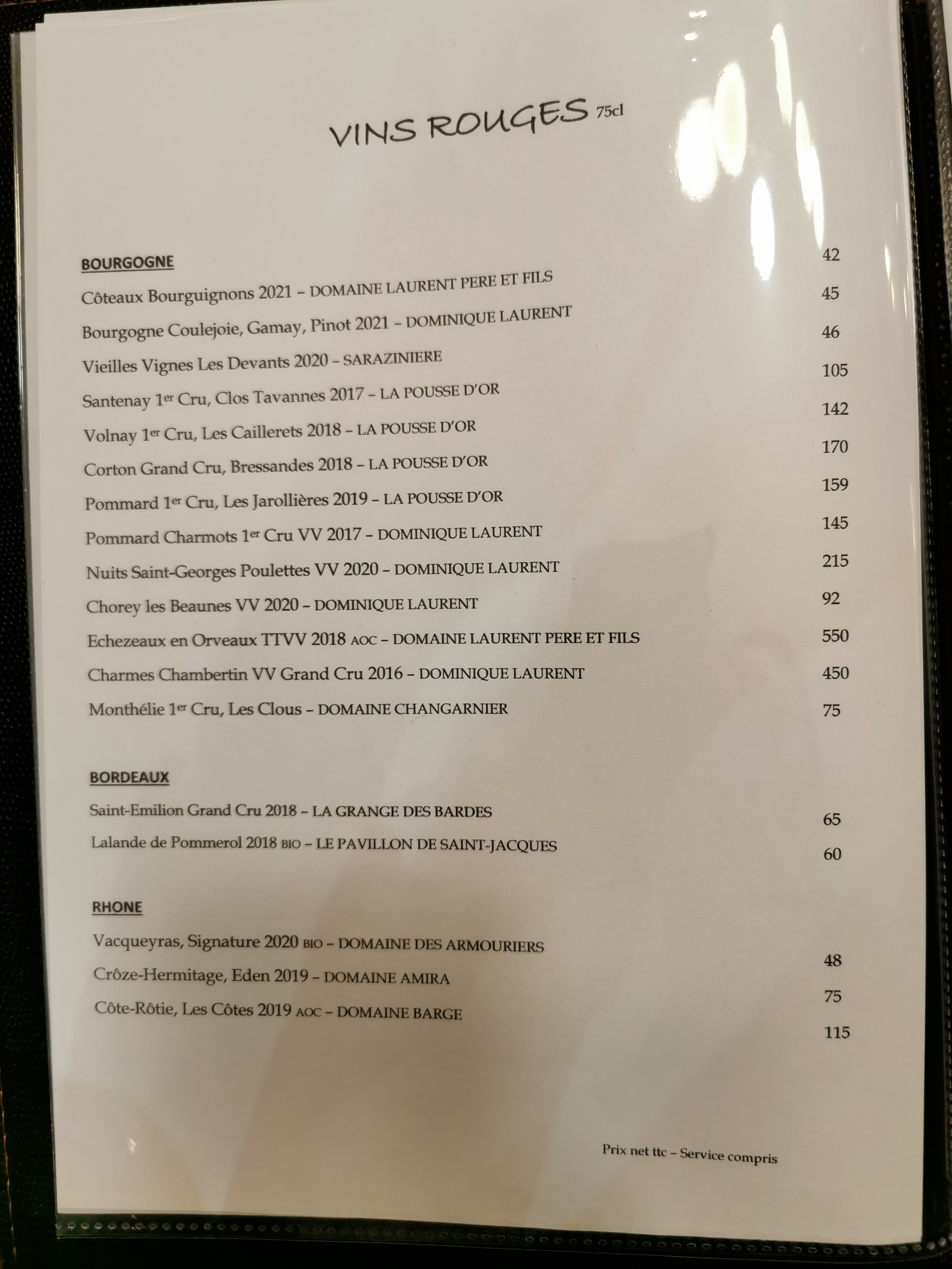 Très bien, belle carte renouvelée tout les 15 jours, finesses des accords et assaisonnements parfait