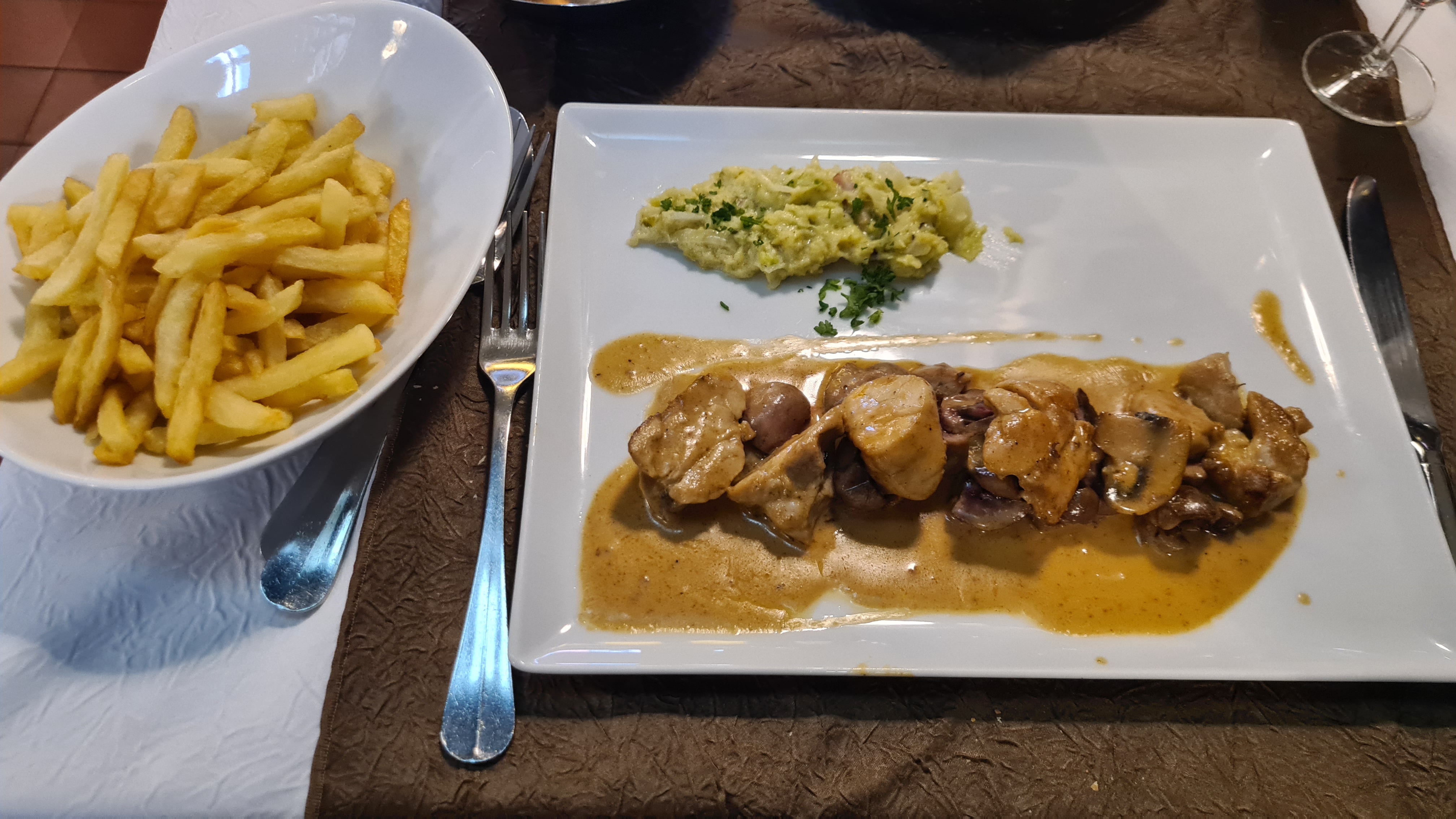 Une cuisine authentique ,la joue de boeuf Rossini etait fondante ,l assiette de St Jacques copieuse et l'entrecote généreuse. Un service souriant ,un cadre typique ,des prix moderes , allez y vous passerez un bon moment.