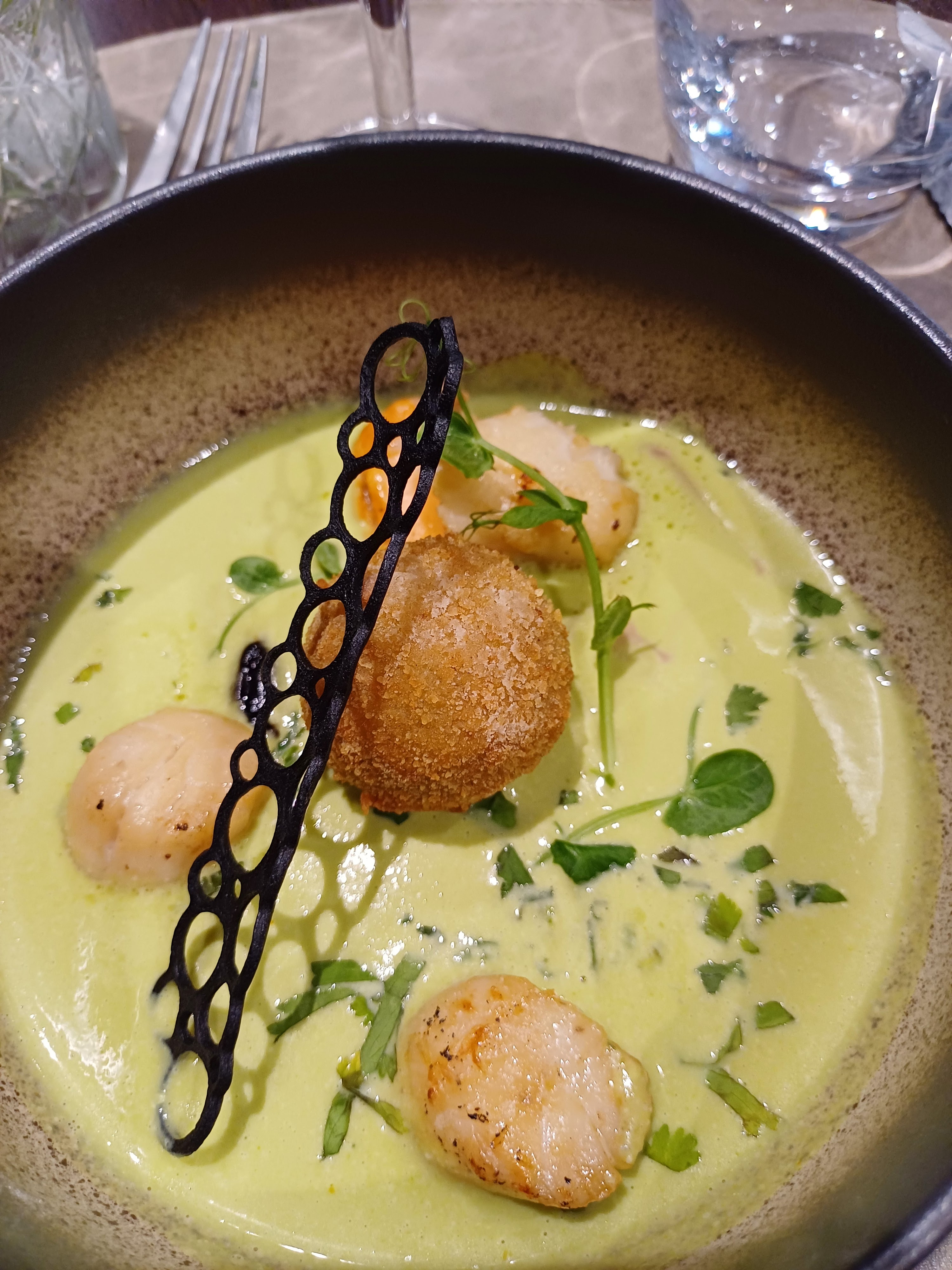 Cela fait plusieurs fois que j'y vais. Toujours délicieux. Et aujourd'hui 15 avril 2023, c'était encore plus délicieux. Idem pour la mise en bouche offerte à notre arrivée. Tout le repas d'une grande finesse, agréable à la vue, aux papilles. L'entrée a été mangée avant de prendre les photos. Ambiance un peu bruyante à mon goût, mais comment faire autrement. Cela n'a pas gêné pour la dégustation.