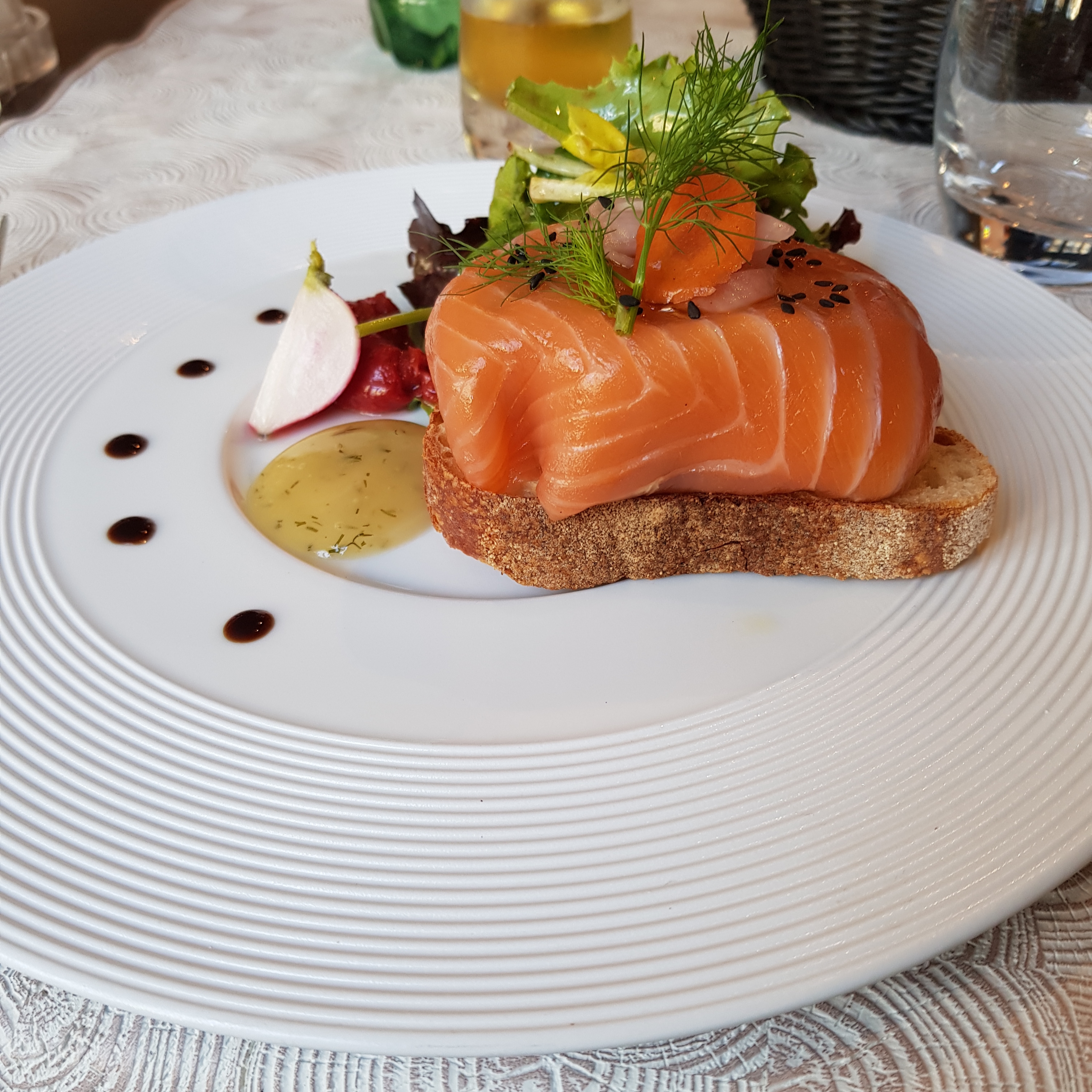 Un service un peu moyen et très désorganisé au début (longueur, apéritifs et entrées servis en même temps, vin qui n'arrive finalement jamais...) mais un geste commercial final qui vient faire oublier tout ça ! D'autant que c'est vraiment délicieux, fin, raffiné, bien présenté. Le rapport qualité prix est excellent. On y retournera !