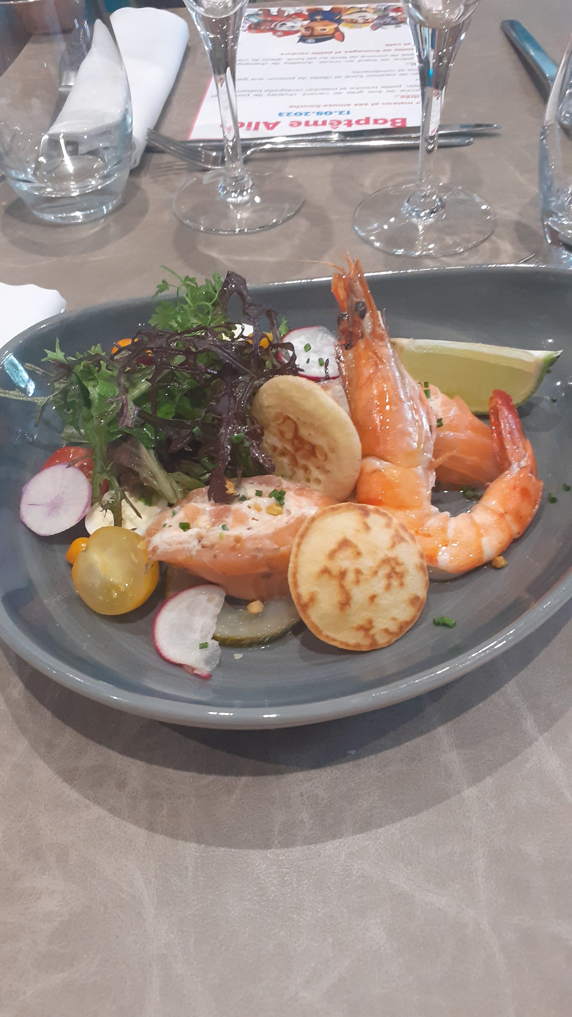 Je recommande vivement ce restaurant, après avoir fait un très bon repas pour un baptême, très bonne cuisine, service super et personnel très agréable et une très belle salle. Merci