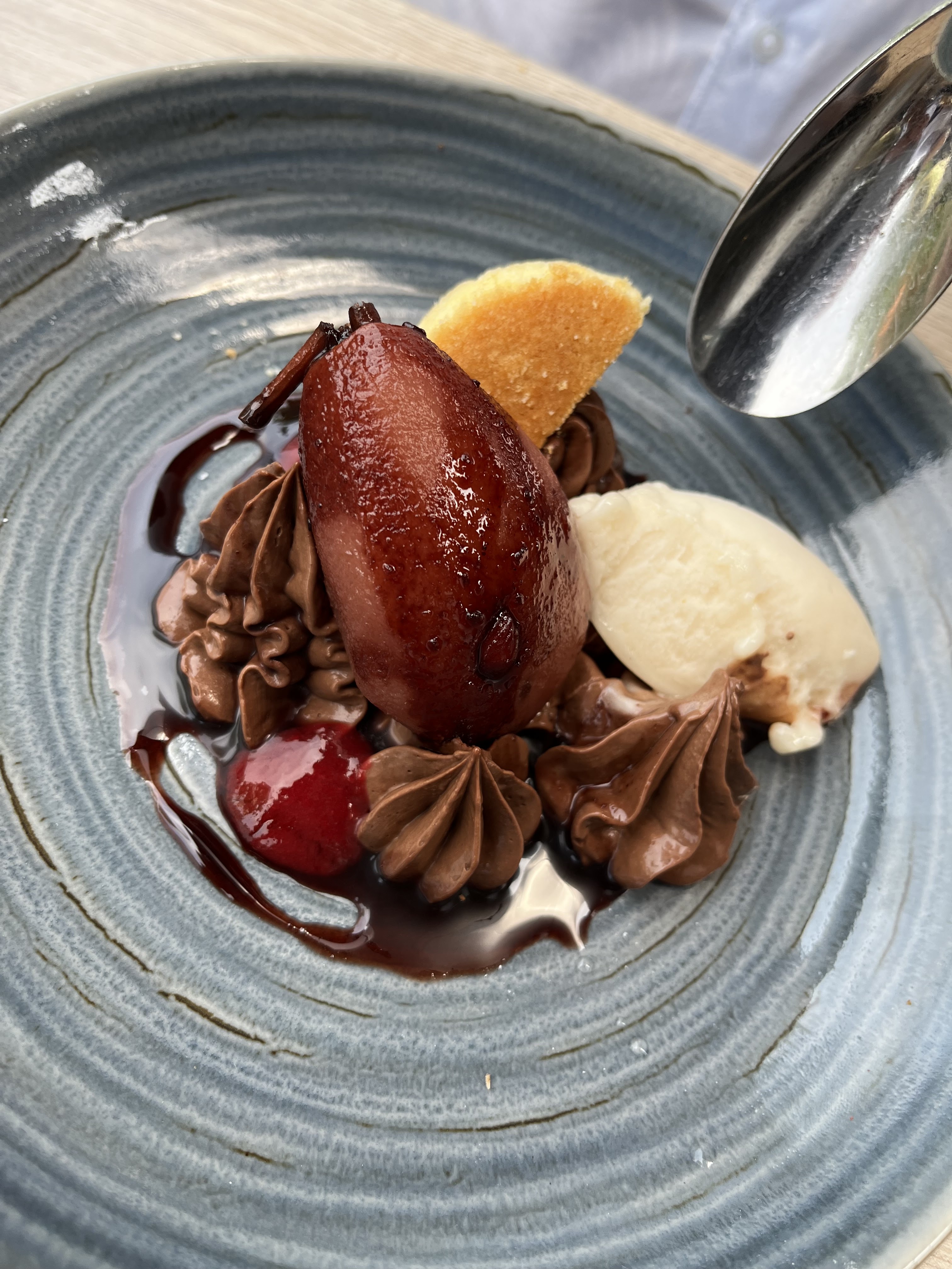 Le rôti de porc de 12h est un délice de fondant en bouche , la garniture excellente mais pour nous du moins, servi pas assez chaud, donc l'assiette à été terminée presque froide et une fois entamé nous n'avons pas osé demander un réchauffage. Nous aurions peut-être dû. Desserts excellents aussi. Rapport qualité prix très convenable pour l'emplacement et le confort du lieu. Service dynamique et professionnel.