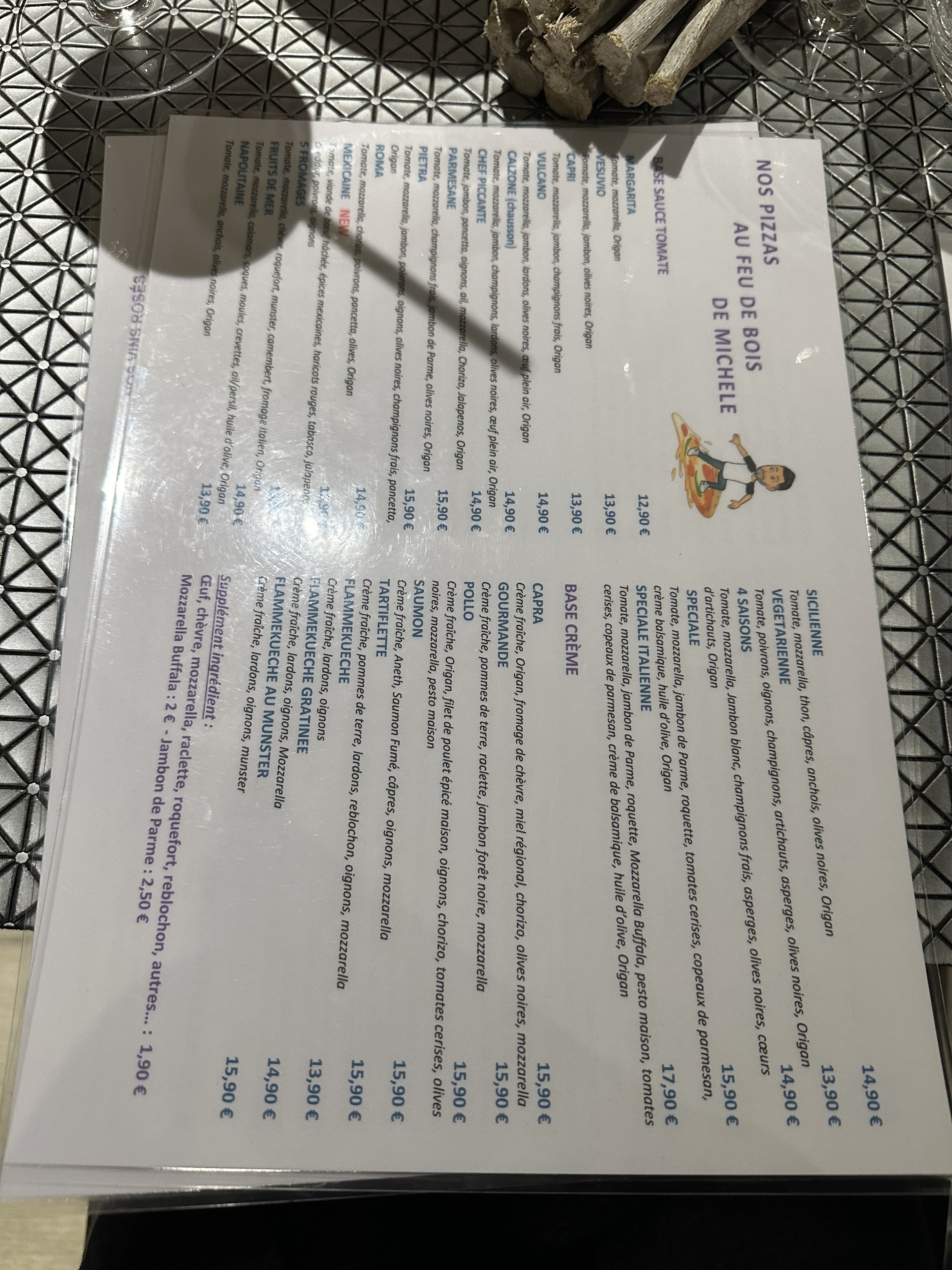 Pour un repas du midi un peu cher ; 1 bière 5,5 € 1 verre de vin 7,80 € 1 suggestion 22,80 € et 1 café ? Le tout 40,20 € ça commence à causer pour une pizzeria. On est pas dans un gastro. Il faudrait revoir les tarifs boissons. Pour le reste c’est très sympa