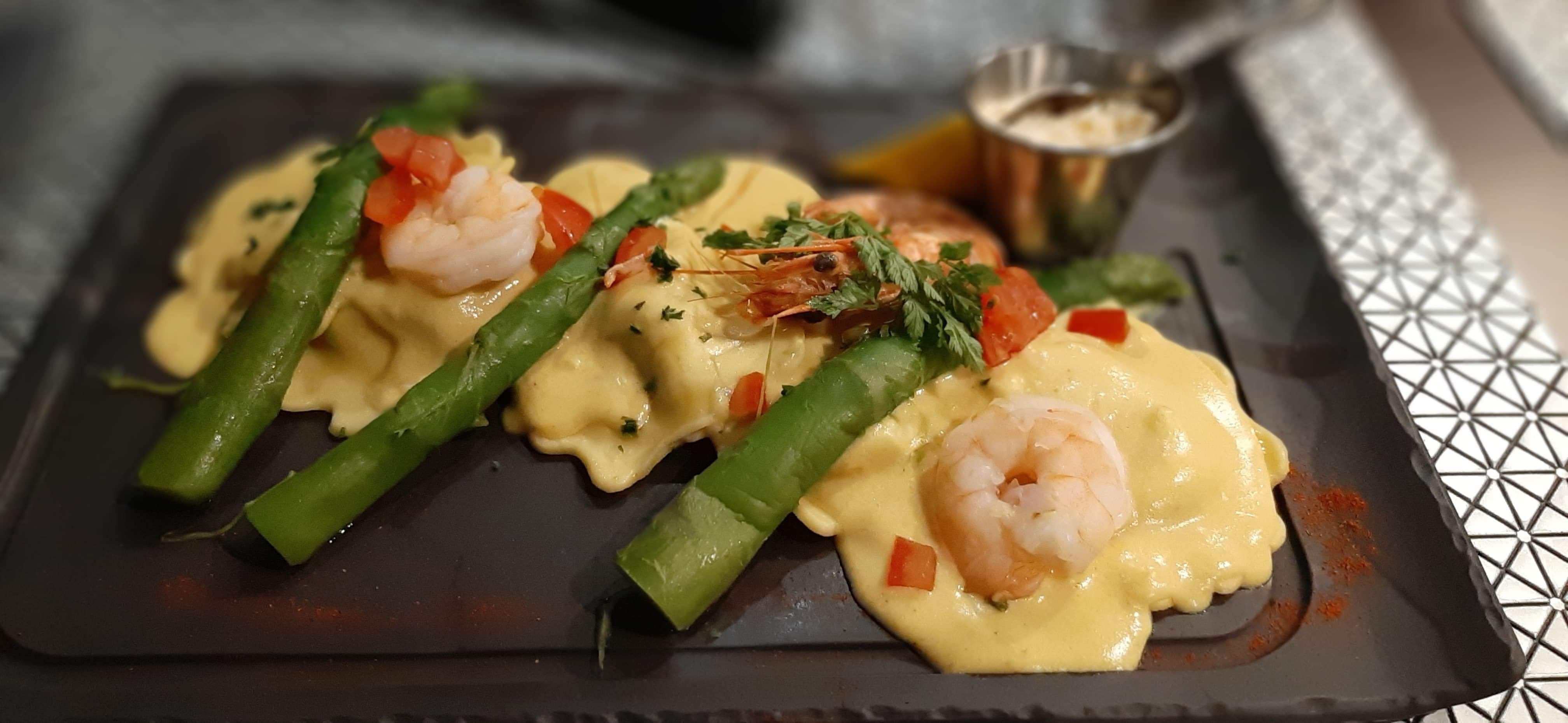 Accueil chaleureux. Serveuse de bon conseil. Ravioles écrevisses goûteuses et sauce délicate 😋 dessert brioche pain perdue réconfortante 😋😋 miam 🙂