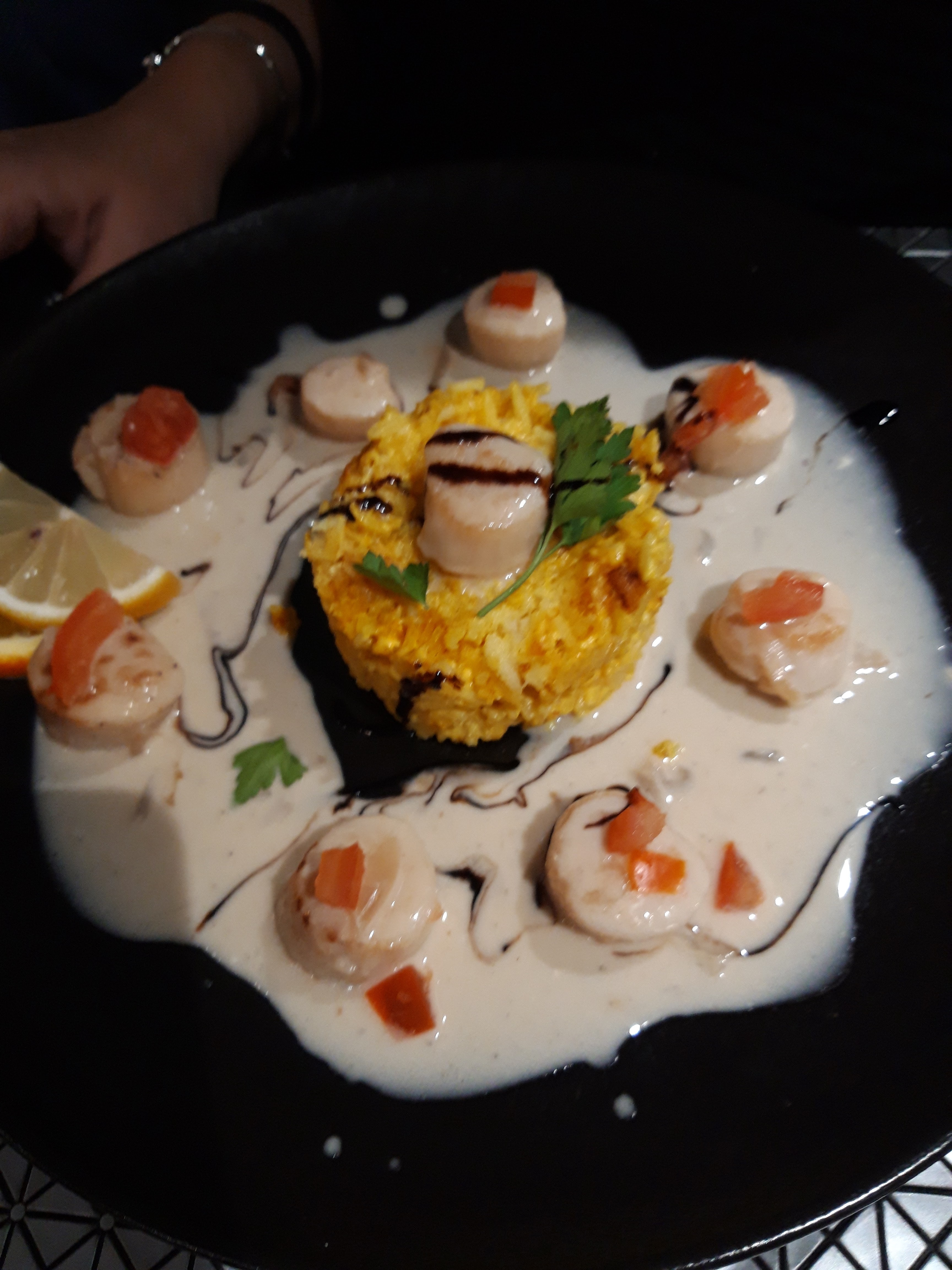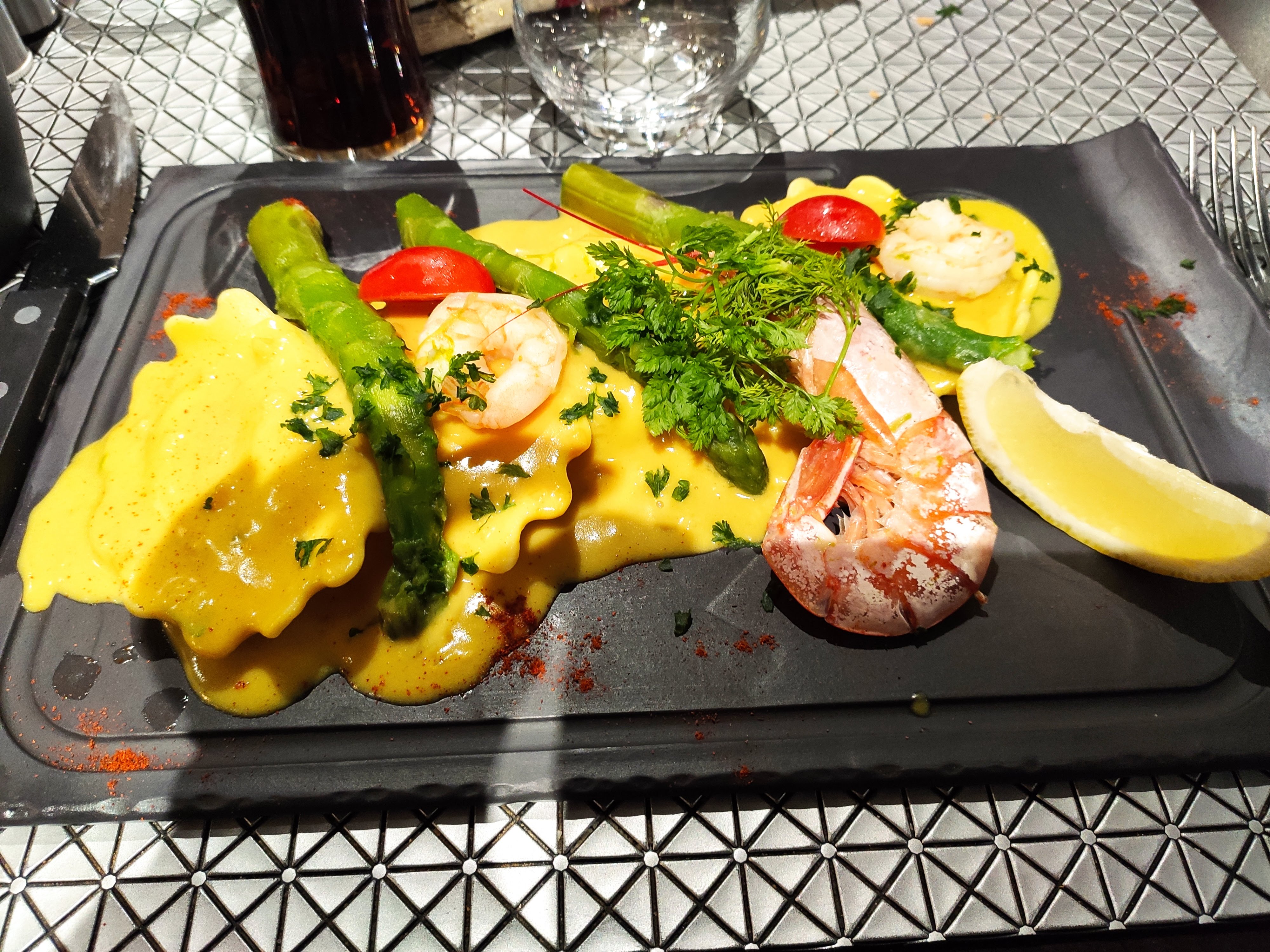 Service impeccable et plat gambas risotto très bon. Miam