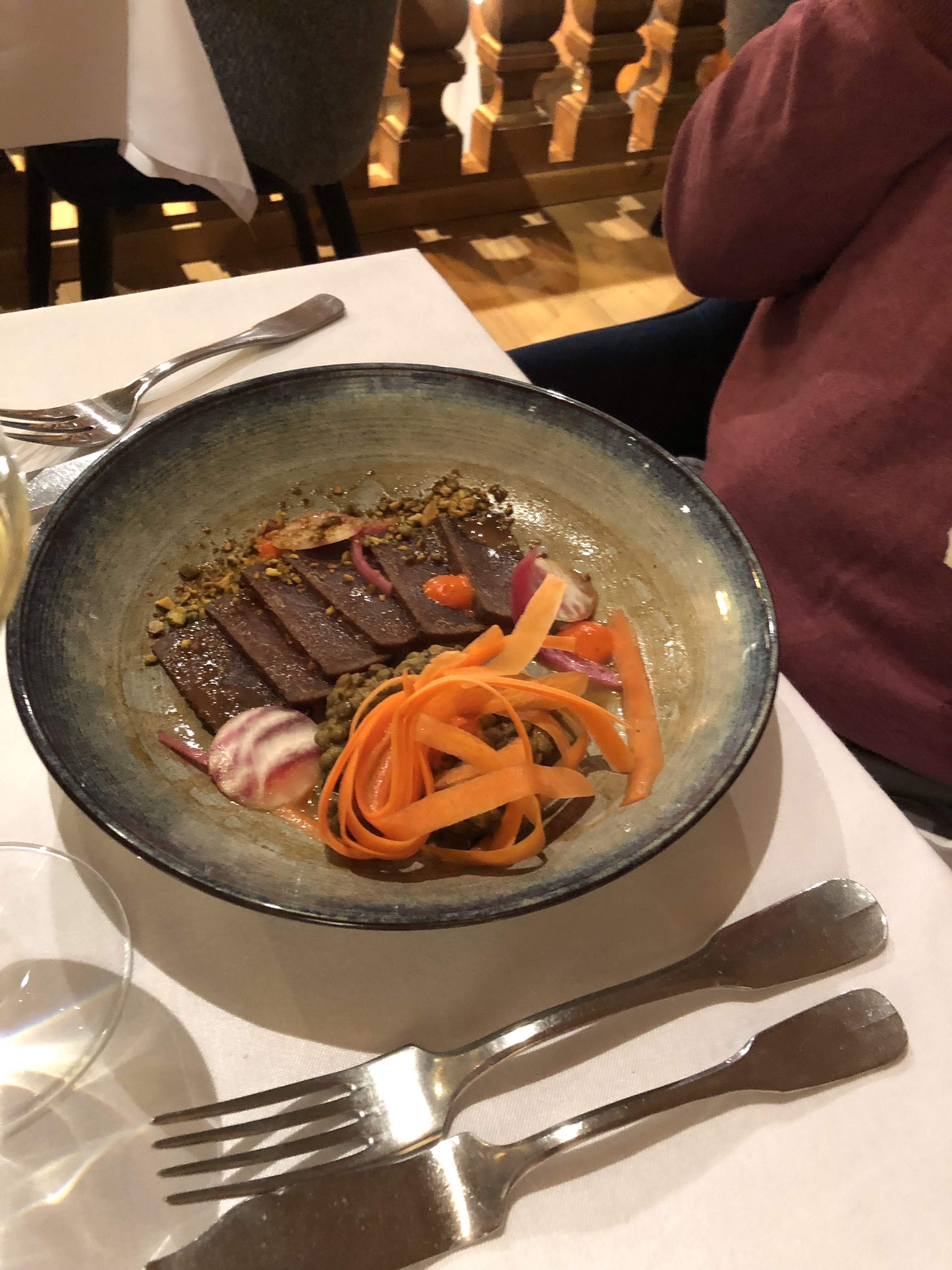 Parfait de A à Z. Ambiance cosy et calme où on s'entend parler. Cuisine raffinée, excellente carte des vins. Service parfait, aimable et souriant. Rien à dire, on y retournera 😉