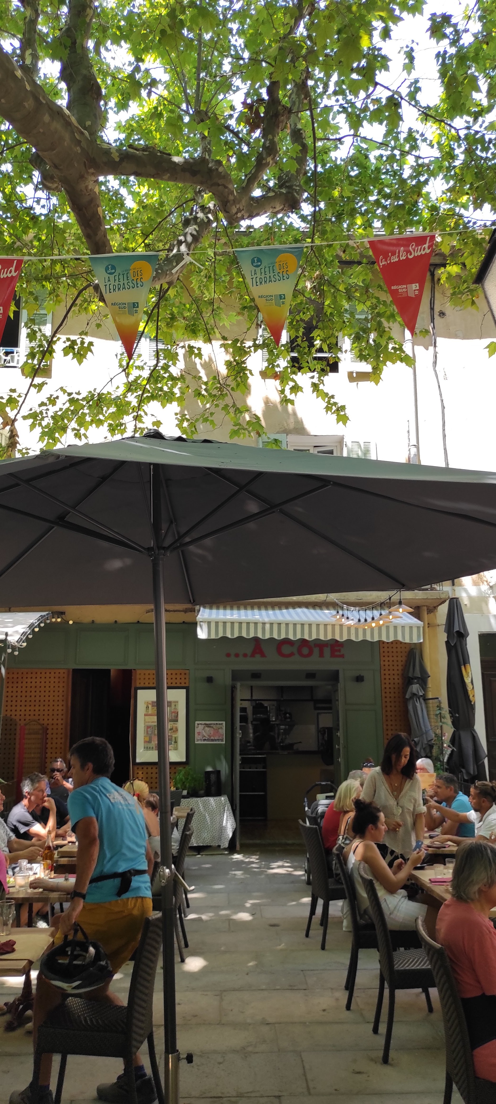 Deux restaurants sont jumelles soit La place et A Côté . Je ne suis pas allé à La Place mais A Côté est à éviter à tout prix plus d'une heure d'attente pour une salade et un capaccio tout ça pour une terrasse de 9 tables. L'excuse etant que les cuisines sont trop petites. On croit rêver,!b