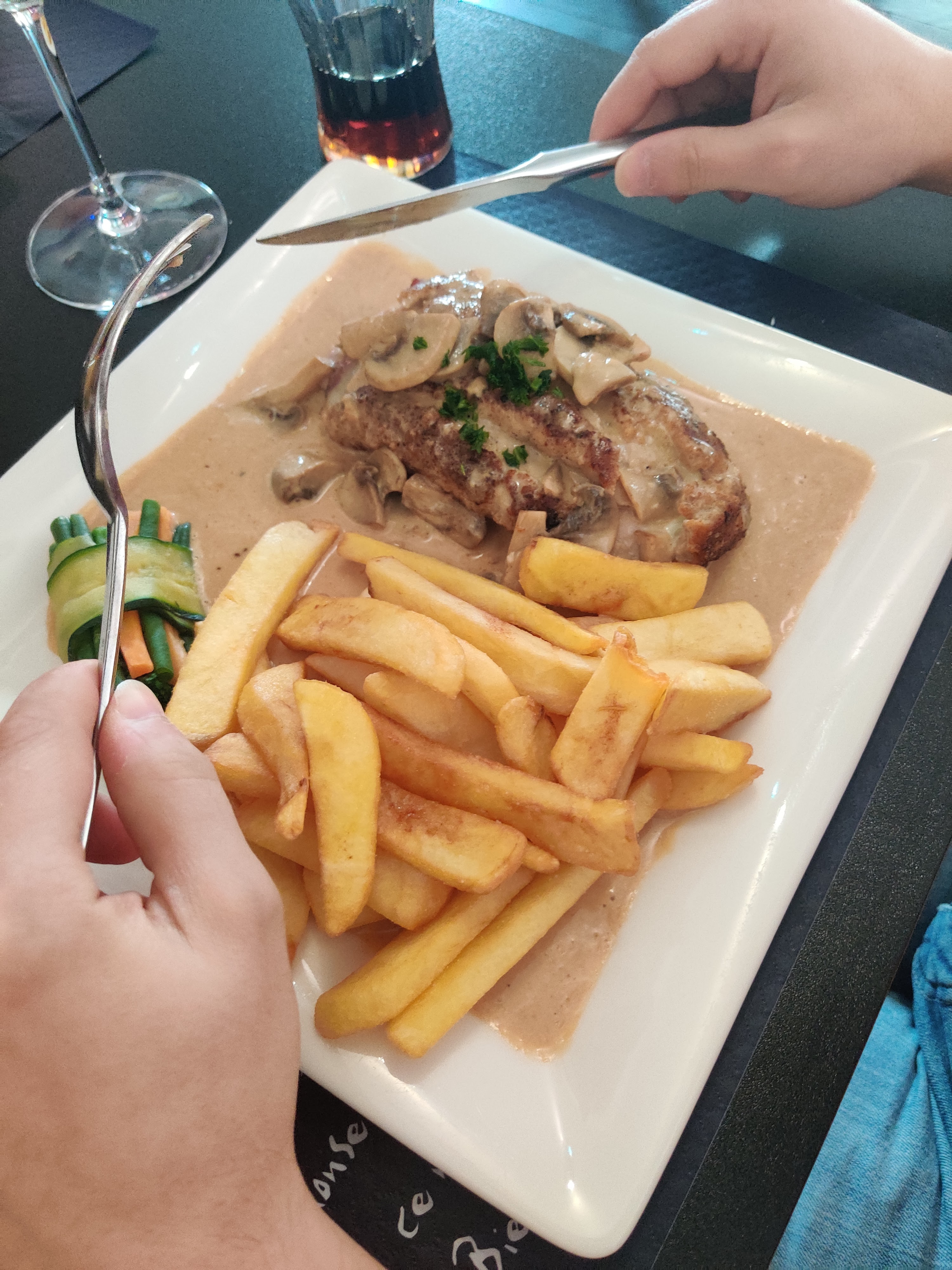 Bon accueil service rapide cordon bleu très beau morceau mais pour le prix aurait pu être plus tendre et les haricots verts auraient dû être plus relevés que nature dommage ! Cela n'est pas mon premier cordon bleu de veau ! Côté qualité de la viande déçu voilà le bémol ! Je n'ai pas dit immangeable !