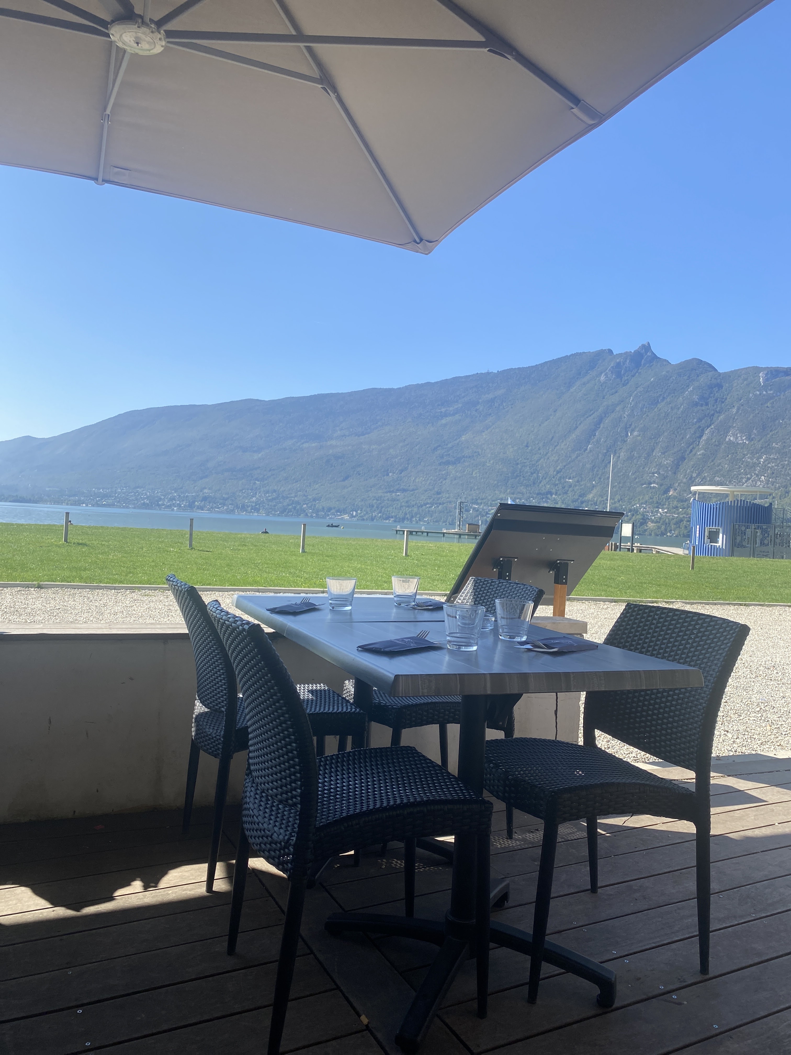 Toujours ravie de venir passer un bon moment dans cet établissement! Et ça commence par le plaisirs des yeux avec cette vue de dingue sur le lac et la dent du Chat. Accueil par un directeur attentionné et avec une équipe serviable et souriante. En mode restaurant on se régale avec une cuisine qui a des inspirations asiatiques et en mode apérobulles ambiance assuré et cocktails délicieux. Je recommande bien sûr!