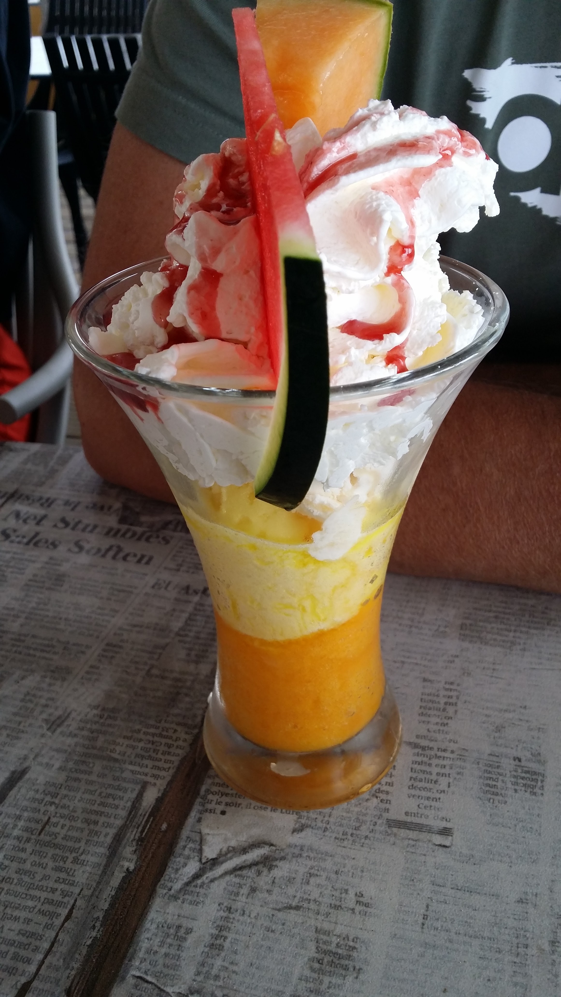 Des compositions de glace copieuse et onctueuse , côtés cuisine très bonne moules mais déçu des sauces proposés trop coupé à l'eau voir inexistante pas vraiment de goût c'est dommage pour un restaurant à volonté sur ce produits.