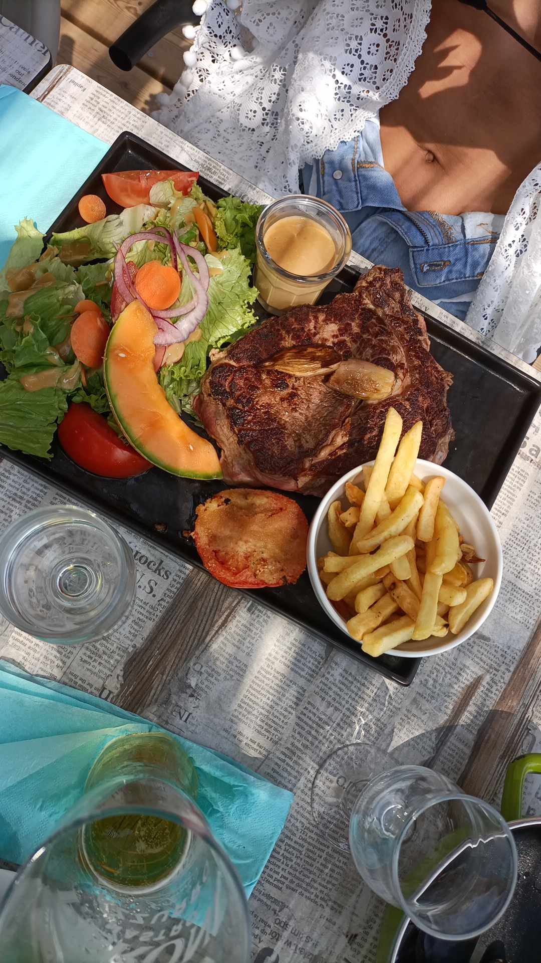 Un vrai regal, des plats excellents et copieux. Serveuses super sympa compétentes. Pas besoin de redemander du pain ou de l eau on est resservit à peine finit Cadre magnifique sur la plage direct..un vrai petit paradis. MERCI pour ce bon moment