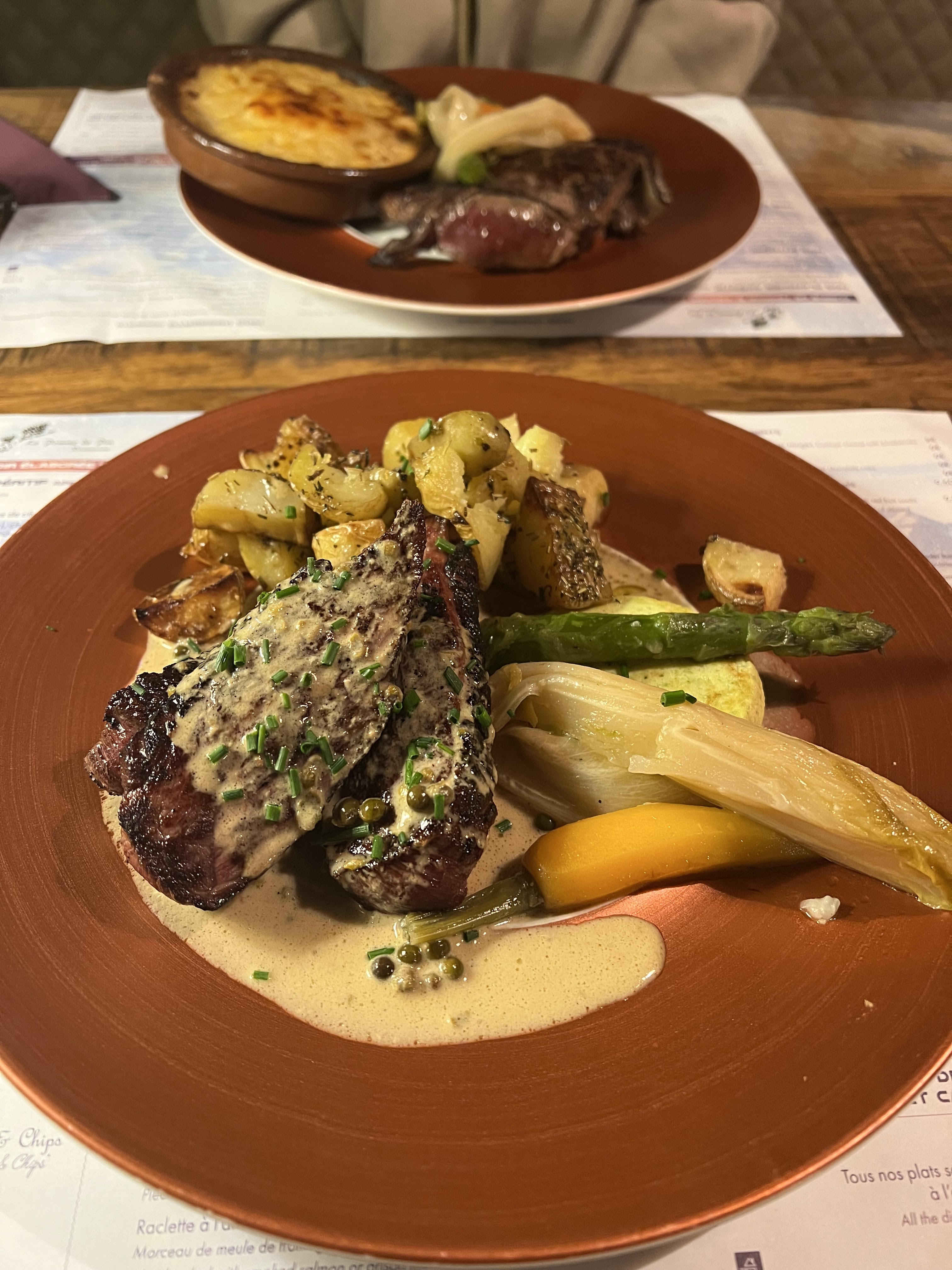 Excellent (fondue aux cèpes), décor d'ambiance restaurant de montagne, légèrement bruyant (beaucoup de grosse tablée cette fois-ci à l'intérieur), service rapide, personnel attentif et chaleureux, prix correct. Pensez à jeuner avant car très copieux. A recommander. Merci. Une très bonne soirée.